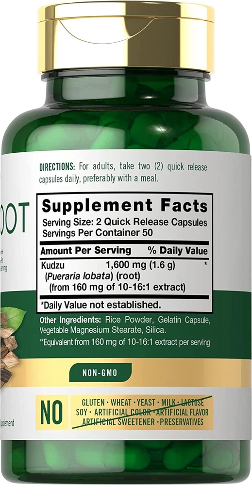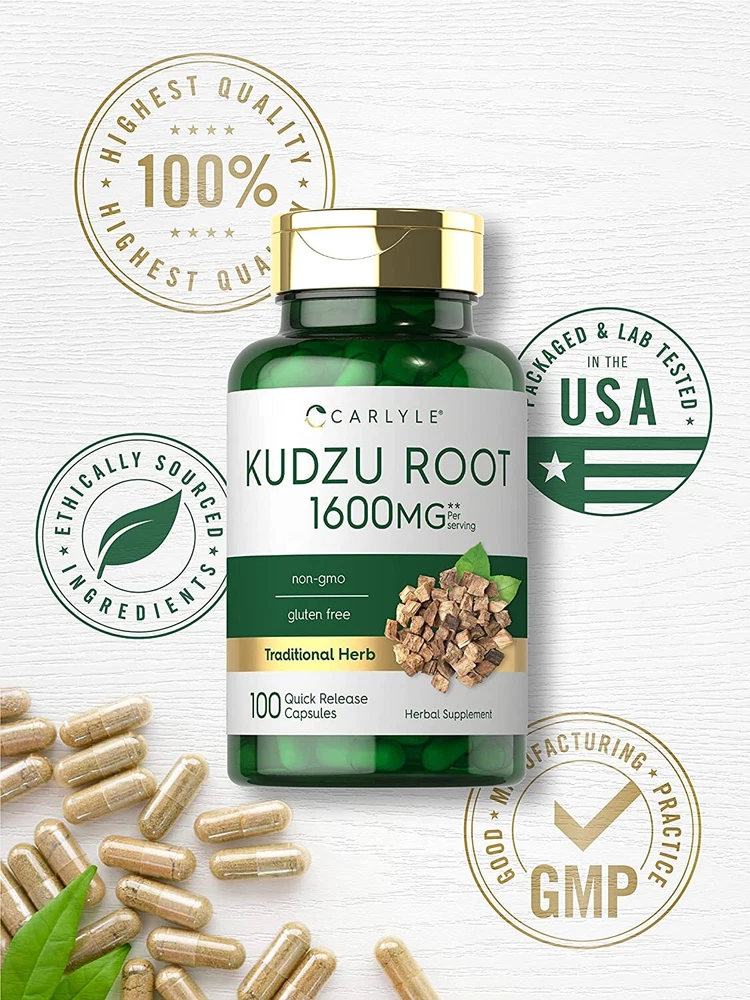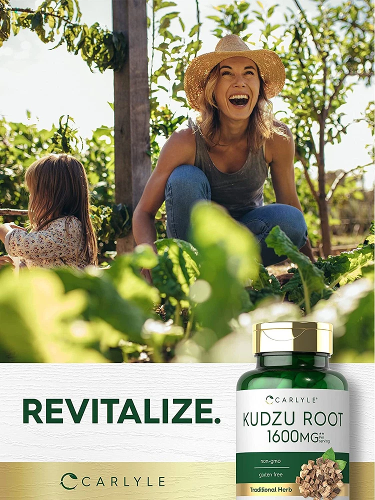 What is Kudzu Root? Kudzu (also known as "Chinese arrowroot") is a vine native to Southeast Asia and the Pacific Islands. The roots and leaves of this perennial plant have been utilized in Chinese wellness practices for centuries. Today, Kudzu Root is popular all over the world and obtained from supplements like powder, tea, tinctures, capsules, and other pill forms! Kudzu Root Capsules: Derived from roots of the Pueraria lobata plant, Carlyle Kudzu Root supplement is a source of naturally occurring vitamins and antioxidants for your daily routine. Our formula delivers the equivalent of 1,600 mg of Kudzu Root per serving in gluten-free and non-GMO capsules, making it a phenomenal source of this traditional herb. Carlyle Kudzu — Rooted in Wellness: Our expertise in sourcing the purest ingredients combined with advanced technologies makes us proud to deliver premium, honest supplements at the best value. Carlyle Kudzu Root is a testament to our commitment to excellence, made with powerful ingredients rooted in wellness. Thanks for choosing us in your pursuit of living healthy. WARNING: Not intended for use by pregnant or nursing women. If you are taking any medications, planning any medical or surgical procedure or have any medical condition, consult your doctor before use. If any adverse reactions occur, immediately stop using this product and consult your doctor. Not intended for use by persons under the age of 18. If seal under cap is damaged or missing, do not use. Keep out of reach of children. Store in a cool, dry place.