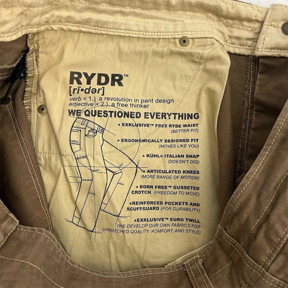 Season: Fall Style: Cargo Size: 36 Features: Articulated Knees,Gusseted Crotch,Scuff Guard Material: Cotton,Spandex Front Type: Flat Front Color: Brown Fit: Regular Product Line: KÜHL Rydr gtin13: Does not apply Department: Men Inseam: 32 Occasion: Casual Size Type: Regular Pattern: Solid Model: 5016 Brand: Kuhl Leg Style: Straight Garment Care: Machine Washable Pocket Type: 5-Pocket Design Rise: Mid (10-12 in) Type: Pants Closure: Button Fabric Type: Denim UPC: Does not apply