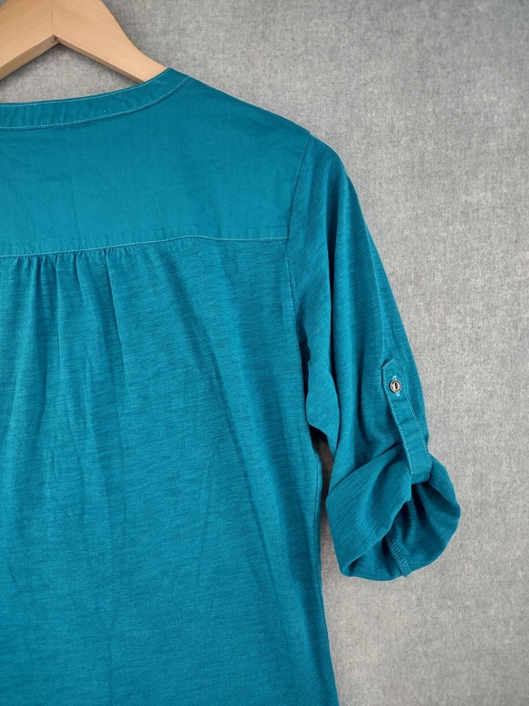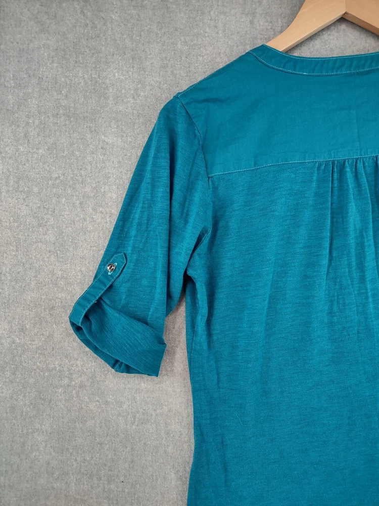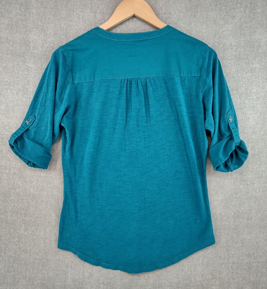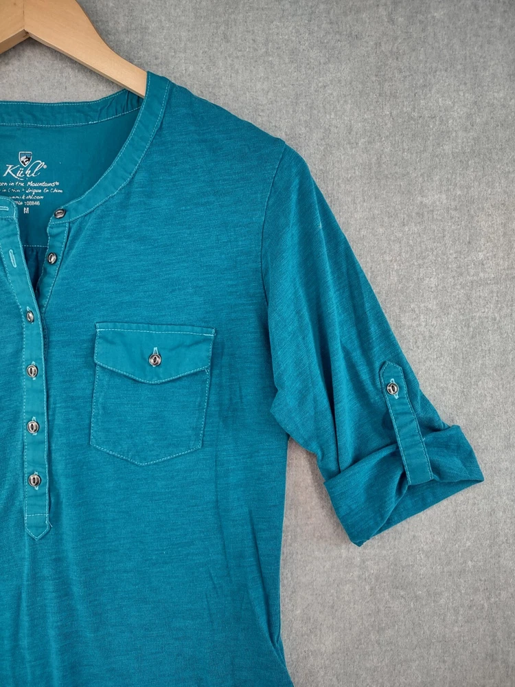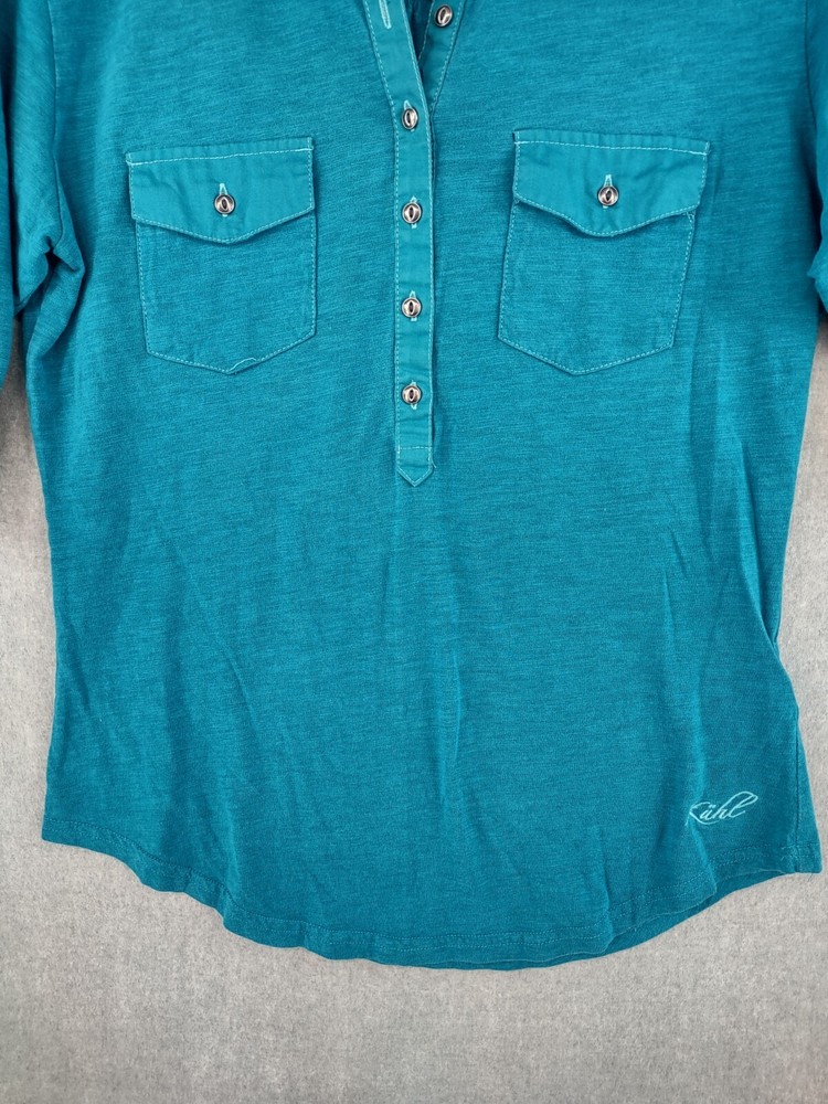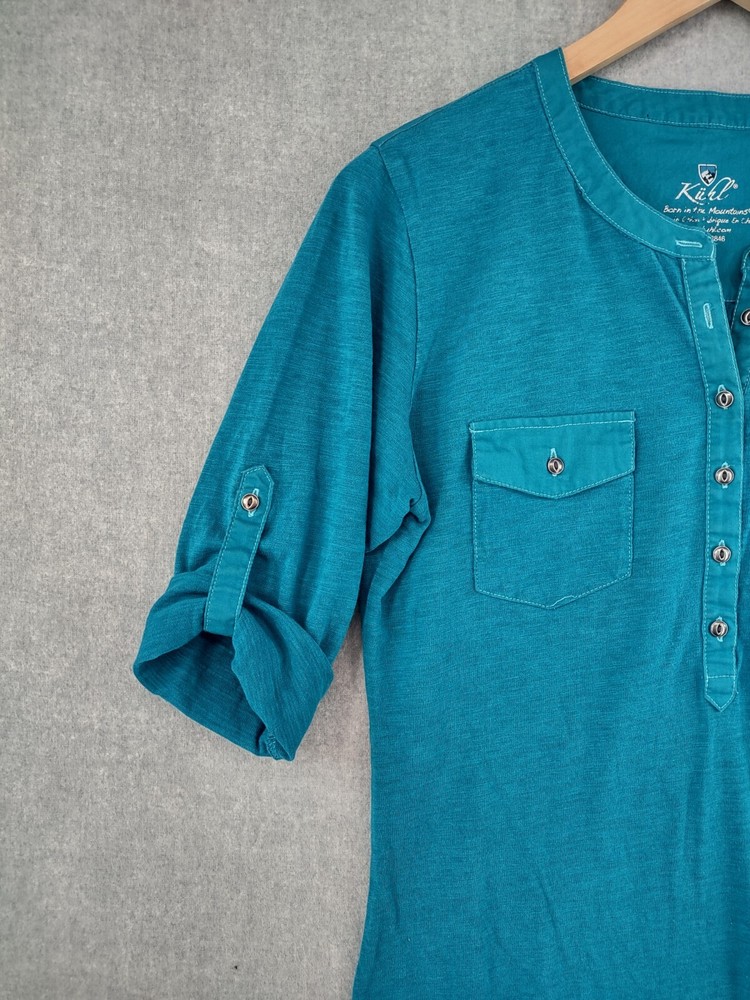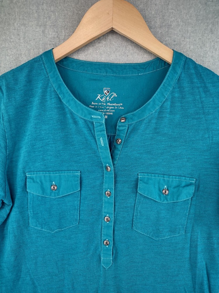 Welcome to Aspen Crossing, your destination for modern western bohemian style reflecting the rugged beauty of our American West. Kuhl Top Womens Medium Blue Organic Cotton Pocket Henley Roll Tab Sleeve 25.2" LENGTH: Measured from the top of the shoulder to the hem. 18.5" CHEST WIDTH: Underarm to underarm, measured flat from left to right. 3/4 Roll Tab Sleeve It is always best to compare the measurements above with a top that fits you comfortably. CONDITION - Excellent pre-owned condition. All items are cleaned per EBAY standards. Not spot treated. See the photo gallery to view this items measurements and condition. SHIPPED - USPS First Class Mail unless item weight requires priority mail. RETURNS accepted, must be returned within 30 days in original condition to receive a full refund. SHIPPING AND HANDLING We ship all packages within five business days Monday through Friday except Holidays. Consolidated shipping is available for multiple purchases. Thank you for helping our planet and buying previously owned and loved items. I am grateful for your business. Enjoy! Check out our eBay store and follow us. There are new listings daily. CUSTOM SKU: 21-2389 Disclaimer: While we make every effort to capture the most accurate depiction of every item when photographing, colors may vary from screen display to in person therefore we cannot guarantee "exact shade" on any item. Message us if you have questions.