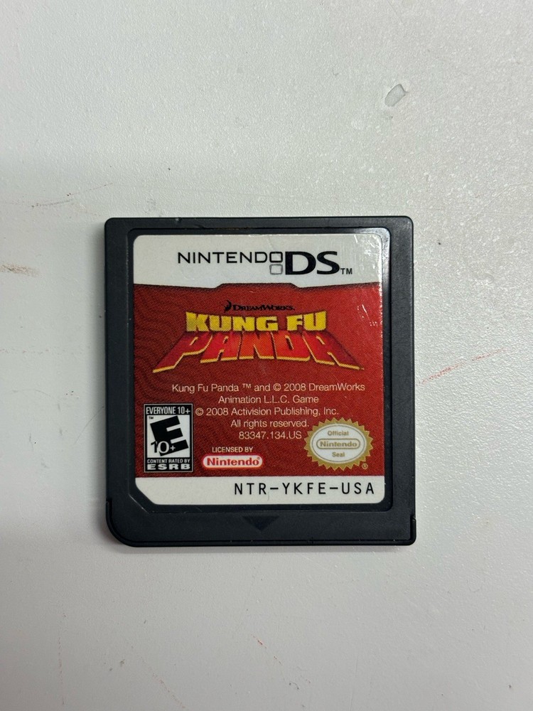 The product is a Nintendo DS cartridge of the game "Kung Fu Panda" released in 2008. This authentic and working copy has been tested and is suitable for players aged 10 and up. Published by Activision, this game falls under the genres of battle and action & adventure. Made in the United States, this NTSC-U/C (US/Canada) region game offers exciting gameplay and challenges for fans of the Kung Fu Panda franchise on the Nintendo DS platform.