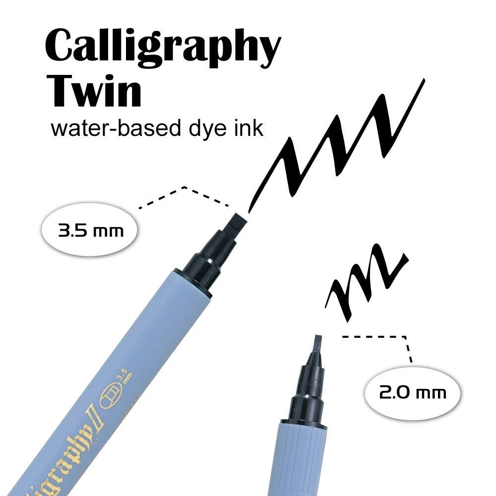 Twin type calligraphy markers of 3.5 mm and 2.0 mm. A total of 12 colors. Kuretake has developed a series of markers that can be used for various purposes. A wide variation of thickness, softness and color of the pen tip brings you new discoveries and smooth writing. We have expanded the image world with a smooth touch pen tip and color variations of vibrant colors. It is convenient for carrying around because it is compact size that can be put in pen punch. Since there are plenty of colors, you can change the color for each content of the schedule, or you can enjoy it freely with your favorite colors. In addition, each refill is available, you can continue using your favorite pen. Kuretake Co., Ltd. is a Japanese stationery manufacturer. It is a manufacturer known for ink for calligraphy, brushes and so on. In addition, Kuretake manufactures pens, glue, paper products such as letter paper etc. In recent years, Kuretake manufactures crafts and art supplies such as calligraphy, watercolor paintings and has expanded its business abroad, including the United States and Western Europe. Good products of Kuretake will give you new discoveries and pleasures to your work. ZIG Calligraphy 2 Pens 12 Colours Set (Japan Import) Dual tip calligraphy marker with double tip (pen) with 3.5mm and 2.0mm square tip. Easily draw large and small letters with a pen. USAGE Excellent pen for practicing calligraphy without the hassle of using a dip pen. 12 beautiful colors that are smooth, vivid and easy to use. Recommended for professionals and beginners. Colour mix and mix more than 2 colours together. Use it not only for writing letters, but also for drawing decorations, such as flowers and leaves. Water-based ink, can be mixed with water or mixer. Use a water brush pen to mix and blur to create gradations.