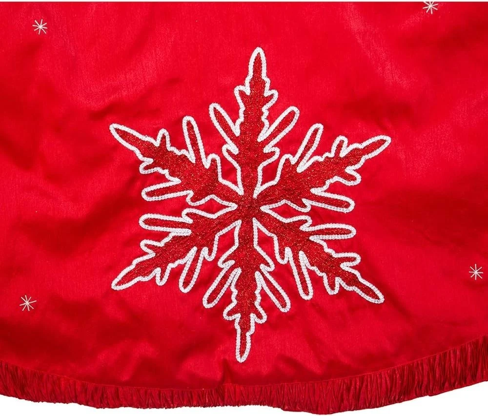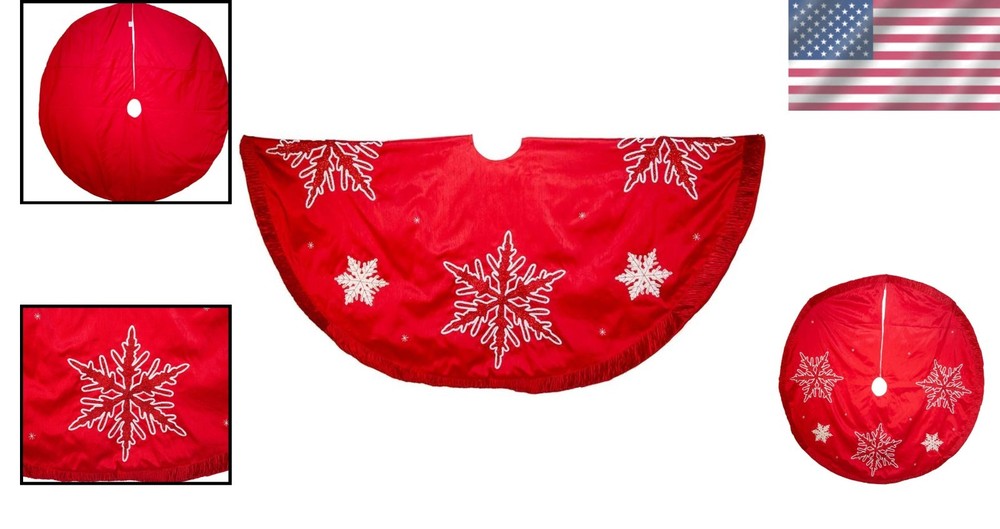 Kurt Adler 60-Inch Red Tree Skirt - Snowflake Embroidered ‹ › ‹ › ‹ › ‹ › ‹ › ‹ › ‹ › 60-Inch Red Tree Skirt - Snowflake Embroidered Make your holiday season truly magical with this exquisite tree skirt! Elegant Design: Features a vibrant red fabric beautifully adorned with delicate white embroidered snowflakes. Generous Size: A spacious 60-Inch round design that perfectly fits any Christmas tree. High-Quality Material: Crafted from durable polyester, ensuring it stands the of time after . Charming Details: The pleated trim adds a touch of sophistication, enhancing the festive look of your decor. Handmade in India: Each piece is thoughtfully made, reflecting traditional craftsmanship. Transform Your Holiday Decor This beautiful red tree skirt is not just a functional piece, but a statement of elegance that encapsulates the spirit of the season. Its charming snowflake embroidery and pleated design will beautifully frame your tree, creating a warm and inviting atmosphere for family and friends. Why Choose This Tree Skirt? Elevate your holiday décor with a stunning centerpiece that complements any festive setting. Perfect for capturing holiday memories, this tree skirt is sure to be a cherished part of your family traditions for to come. The vibrant hue and intricate detailing will spark joy and bring a festive look to your home during the most wonderful time of the . Indulge in the spirit of the season with our 60-Inch Red Tree Skirt. Order yours today and wrap your tree in warmth and joy! Shipping Free & Fast Shipping - We offer free shipping to most of the USA with a normal delivery time of 3-10 business days. However, due to various situations, additional delivery time (up to 3 weeks) may be required for some items. Alternative Carriers - We may use alternative carriers (e.g. USPS, FedEx, UPS, etc.) to ensure your package arrives safely and on time. Due to the use of multiple carriers, we are unable to provide a tracking number automatically. Handling Time - Orders are processed and shipped within 1-5 business days of receiving cleared payment. Shipping Restrictions - Shipping to Alaska, Hawaii, Puerto Rico, Guam, and other US territories may incur shipping charges or delivery restrictions. Please contact us before ordering, or your order can be refunded/cancelled. State Restrictions - There may be restrictions based on your state of purchase. For example, certain items may not be shipped to California due to state regulations. Contact for Tracking Updates - If you require tracking updates or have any concerns about the delivery of your order, please feel free to contact us, and we will be happy to assist you. Return 30-Day Hassle-Free Returns - We want you to be completely satisfied with your purchase. If you are not, you can return the item within 30 days of receiving it for a full refund or exchange. Easy Return Process - To start a return, simply contact us and we will provide you with a prepaid return shipping label and detailed instructions. Restocking Fee - There are no restocking fees for returns. However, the buyer is responsible for return shipping costs if the return is not due to a seller's error. Refund Processing Time - Refunds will be processed within 5 business days of receiving the returned item in its condition. Payment We accept all major credit cards, PayPal, and Apple Pay for your convenience. Your payment information is secure and encrypted to ensure a safe and seamless transaction. Please complete your payment within 3 days of purchase to avoid any delays in shipping. Feedback Your feedback is extremely important to us. We strive to provide the best products and customer service possible. If you are satisfied with your purchase, please take a moment to leave us a positive review. If you have any concerns or issues with your order, please contact us before leaving negative feedback. We are committed to resolving any problems and ensuring your satisfaction. Contact Us If you have any questions or concerns, please feel free to out to our customer support team. You can contact us through the eBay messaging system. We are available Monday to Friday, 9:00 am to 5:00 pm EST, and we will do our best to respond to your inquiry within 24 hours. Buy it now and enjoy a pleasant shopping experience! Item Weight: 15.2 ounces Unit Quantity: 1 Set Includes: Tree Skirt Material: Polyester Features: Embroidered snowflakes Type: Tree Skirt Occasion: Christmas Color: Red Number of Items: 1 Size: 60-Inch Pattern: Snowflakes Shape: Circle