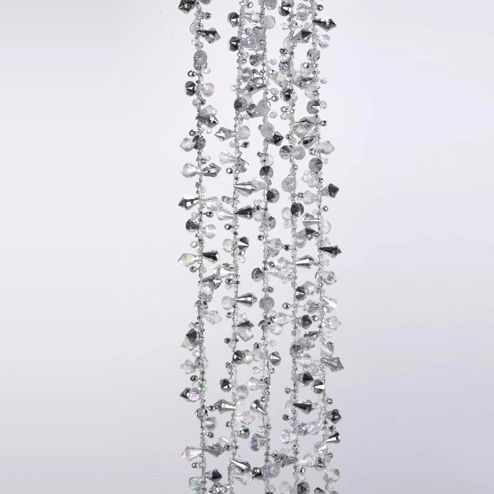 Kurt S. Adler Iridescent and Silver Beaded Garland 9 Feet Long Product Details Is Artificial Garland: Yes Is Lighted: No Shape: Round Manufacturer: Kurt S Adler Product Dimensions: 10 x 7.4 x 10.5 inches Item Weight: 2.4 ounces Item model number: No Model Is Discontinued By Manufacturer: No Number of pieces: 1 Batteries required: No Brand: Kurt Adler Color: Silver Material: Acrylic Item Length: 9 Feet Item Weight: 0.15 Pounds Measures 108 x 1 inches Made of acrylic, imported . Iridescent and Silver Beaded Garland. Made of plastic. Item Size: 9-feet long