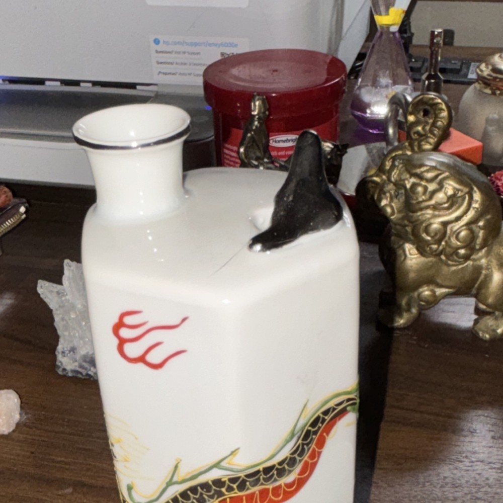 Kutani China Japanese Dragon Motif Sake Bottle and Cup Set Japanese Culture