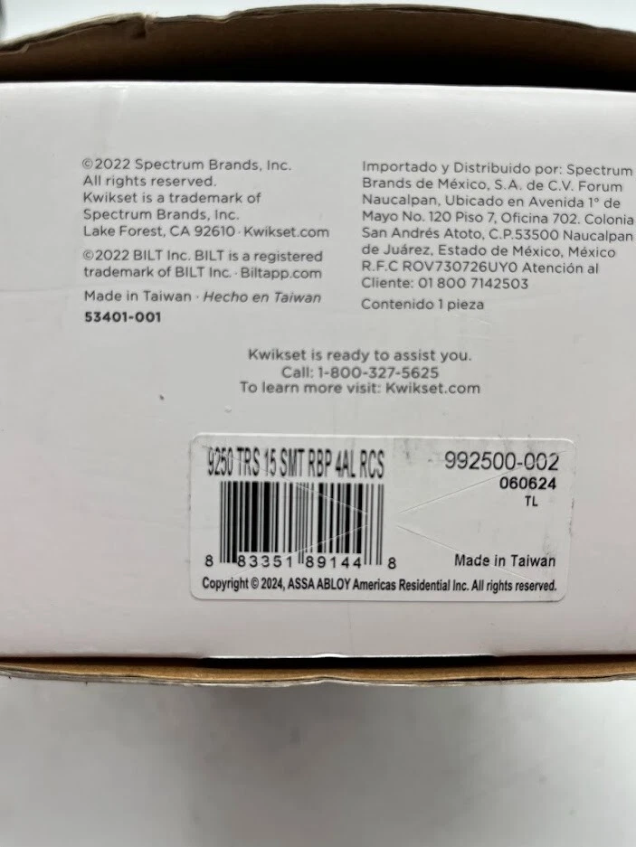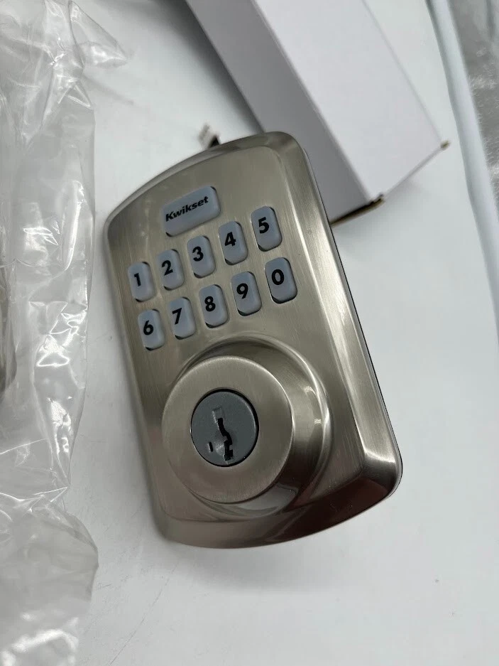 Missing one bolt screw labeled as 52367 on photo. Upgrade your home security with the Kwikset Powerbolt 250 , a sleek, transitional-style electronic deadbolt that offers modern convenience and enhanced security. With its 10-button light-up keypad and customizable features, this keyless entry solution is perfect for any home. Key Features Convenient and Secure Keyless Entry Customizable User Codes : Program up to 25 unique user codes for family members, guests, or service providers. One-Time Codes : Create 5 one-time user codes , ideal for temporary access. Enhanced Security Features Auto Lock Function : Choose from 5 auto-lock settings ( 30 seconds, 1 minute, 3 minutes, 5 minutes, or 10 minutes ) to secure your door automatically after it’s closed. Wrong Code Lockout : Provides added protection by temporarily disabling the keypad after multiple incorrect code attempts. Vacation Mode : Disable the keypad when you're away for extended periods for extra peace of mind. User-Friendly Design 1-Touch Locking : Easily lock the door with the press of a single button. Light-Up Keypad : Illuminated keypad ensures easy access even in low-light conditions. Quick and Easy Installation DIY Installation : Installs with just a screwdriver—no hardwiring required. BILT App Support : Step-by-step interactive instructions available via the BILT app for a seamless setup. Long-Lasting Performance 12-Month Battery Life : Reliable operation with minimal maintenance. We take great care to inspect all items and ensure they are accurately described. Should you have any issues with your purchase, please let us know immediately. We are committed to resolving any concerns promptly and to your satisfaction. Our small business truly appreciates your patronage.