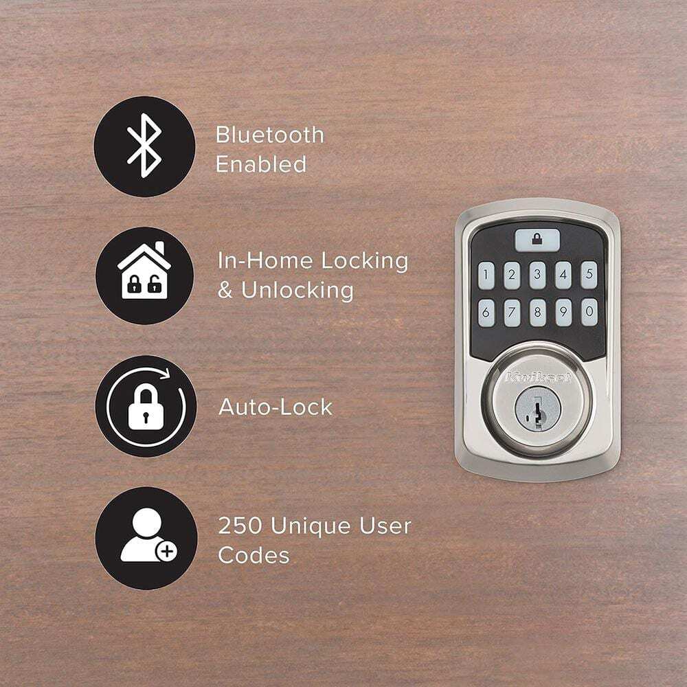 Aura Bluetooth Smart Lock is a keyless entry electronic deadbolt featuring SmartKey. Using the Kwikset App within Bluetooth range, you can lock/unlock the Aura Smart Lock and program up to 250 user access codes that can be scheduled and customized. The crisp, clean appearance of the Satin Nickel finish adds to the overall look of the product and brings a modern feel. Complete your entryway refresh with a matching Kwikset door lever or handleset. Highlights Control with your phone: use your phone to lock/unlock, share guest access, monitor activity at the door, and so much more while in Bluetooth range of the lock Share access with guests: Backlit touchscreen with support for up to 250 access codes. Use the Kwikset app to schedule access windows or share one-time codes with guests Monitor your home: view history log, receive activity notifications, and monitor user access while using the Kwikset app in Bluetooth range of the lock Track All Lock Activity: The Kwikset app's Lock Activity screen conveniently displays all of Aura's activity including actions such as locking, unlocking, low battery warning, manual key-based entries, and other alerts Auto-Lock Security: Set a duration for your door to lock automatically after entry or exit, perfect for keeping your hands free and getting in and out in a hurry Easy Install: Do it yourself, installs in minutes with just a screwdriver, fits doors between 1-3/8 in. and 1-3/4 in. thick Product Warranty: Locks and handles have a lifetime mechanical and finish warranty, and a 1 year electronics warranty; see Kwikset warranty for full details Requires 4 AA batteries, included Easily installs in minutes with just a screwdriver
