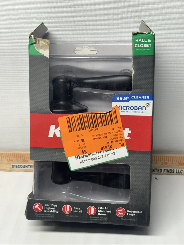 Kwikset Interior Non-Locking/Hall & Closet/Black Matte Finish/NIOB/b20