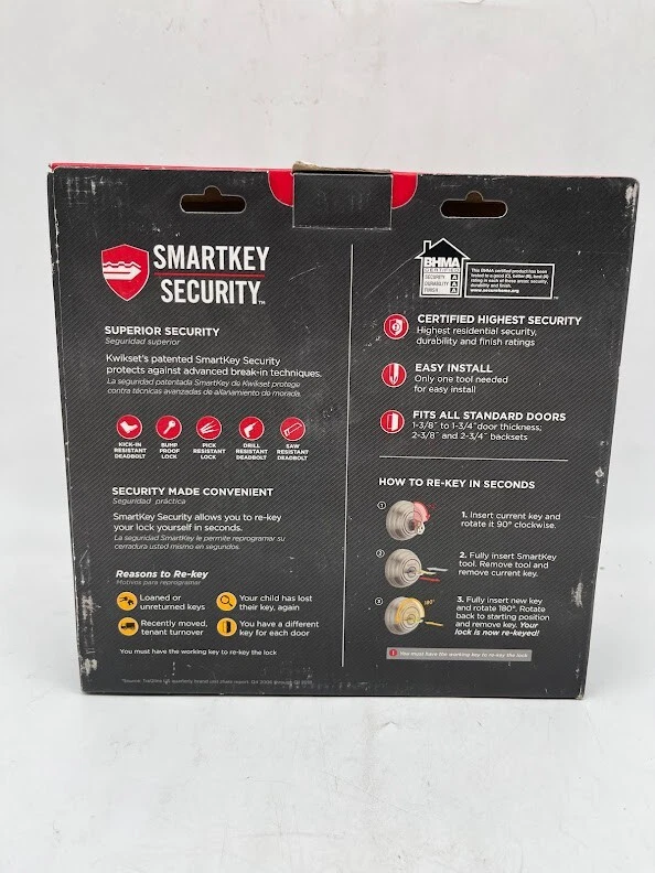 This is a NEW OPEN BOX item. The Kwikset Juno Combo Pack offers superior security and a timeless design for your home. Featuring both a keyed entry door knob and a single-cylinder deadbolt , this set provides two layers of protection . The Satin Nickel finish enhances any door with its clean, modern look, while SmartKey Security technology allows for quick and easy re-keying in seconds—perfect for new homeowners or key replacements. Key Features: Combo Pack for Extra Security: Includes both a deadbolt and a keyed entry knob for double-layer protection. SmartKey Security: Easily re-key the lock yourself in seconds , eliminating the need for a locksmith. Solid Metal Knob: Heavy-duty, durable construction for a sturdy feel and enhanced security . Traditional Design: Classic elegance with a modern Satin Nickel finish to complement various home styles. Fits Standard Doors: Works with 1-3/8" to 1-3/4" thick doors; adjustable latch fits 2-3/8" or 2-3/4" backsets. Quick & Easy Installation: Installs in minutes with just a screwdriver —no need for professional tools. Certified Quality: Grade 2 BHMA certified for security, durability, and finish, ensuring resistance to forced entry . Upgrade your home security with the Kwikset Juno Keyed Entry Door Knob and Deadbolt Combo , a trusted, high-quality solution that blends security with style. We take great care to inspect all items and ensure they are accurately described. Should you have any issues with your purchase, please let us know immediately. We are committed to resolving any concerns promptly and to your satisfaction. Our small business truly appreciates your patronage.
