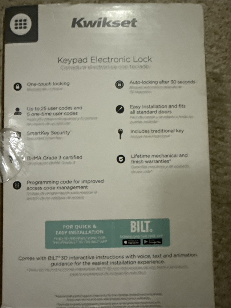 Upgrade your home security with the Kwikset Powerbolt 250 10 Keypad Satin Nickel Electronic Deadbolt Door 25 Lock. Designed for both left and right-handed doors, this single-cylinder deadbolt provides flexibility and convenience. Its sleek satin nickel finish adds a touch of contemporary style to any front entrance or residential door, seamlessly blending with modern home aesthetics. The lock features a user-friendly keypad with ten buttons, allowing for easy access without the need for keys. With ANSI Grade 3 certification, it offers robust security alongside its keyless and electronic capabilities. The package includes all necessary hardware, instructions, and a key for simple installation and use.