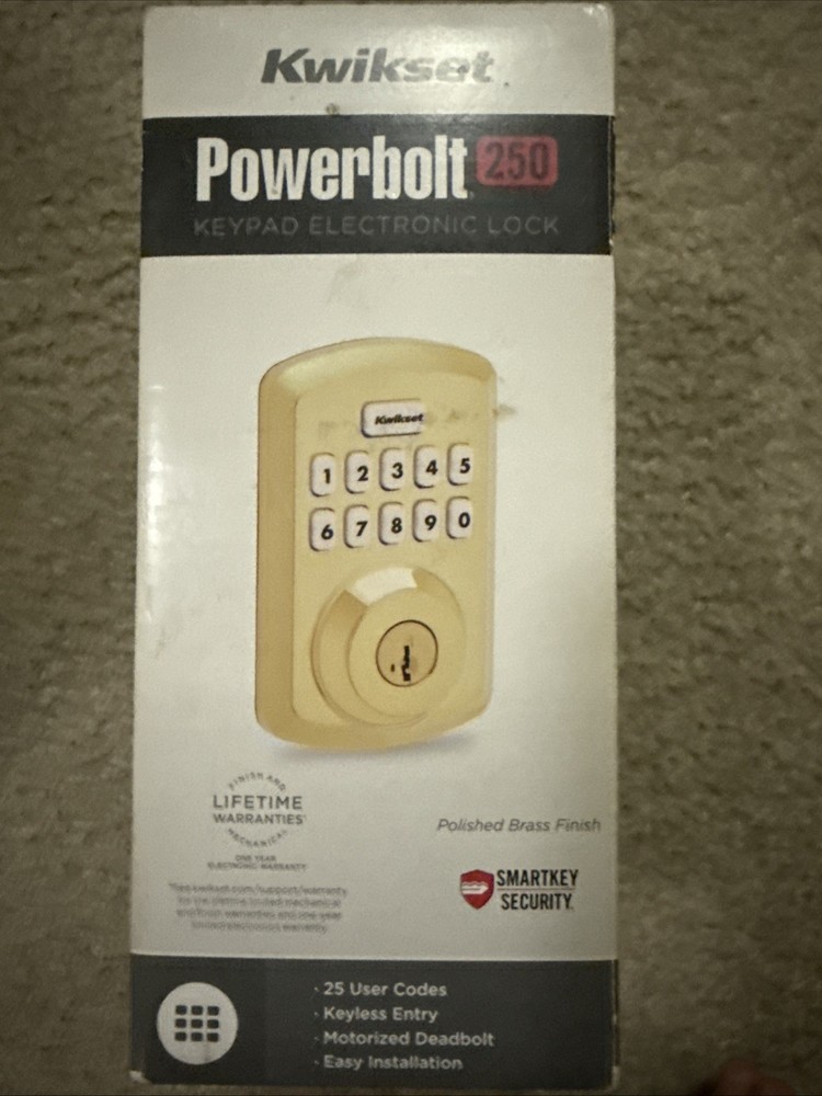 Item Depth: 1 in Number in Pack: 1 ANSI Grade: ANSI Grade 3 (Good) MPN: 9250TRS15SMTRBP Items Included: Hardware, Instructions, Key Model: 9250TRS15SMTRBP Style: Contemporary Color: Gold Country of Origin: Taiwan Door Handing: Universal/Reversible Features: Electronic, Keyless, With Key Mounting: Universal Suitable For: Front Door, Front Entrance Door, Residential Type: Single Cylinder Deadbolt Brand: Kwikset Cross Bore Diameter: 2 in
