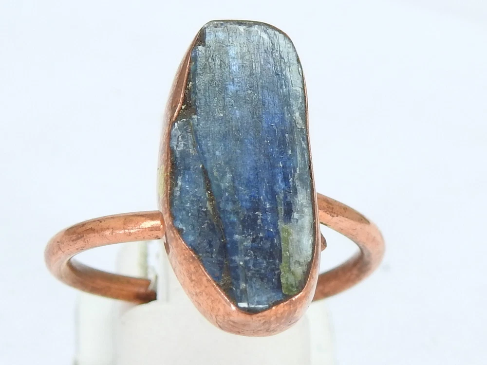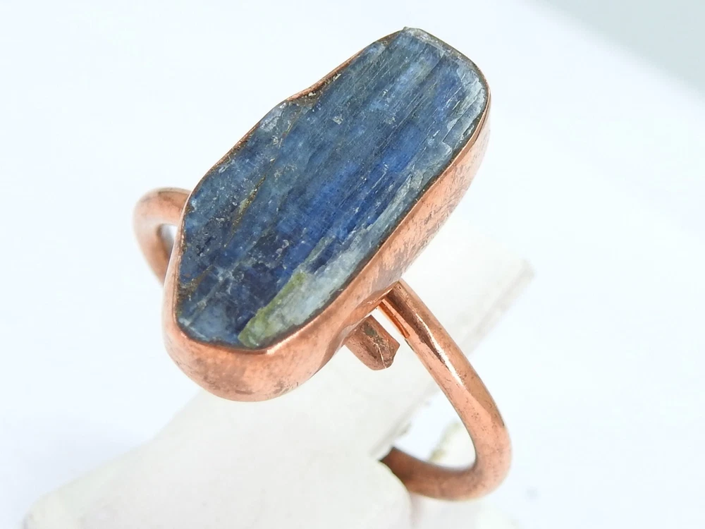 Kyanite Wire Wrapped Adjustable Copper Ring Raw Stone Valentine Gift