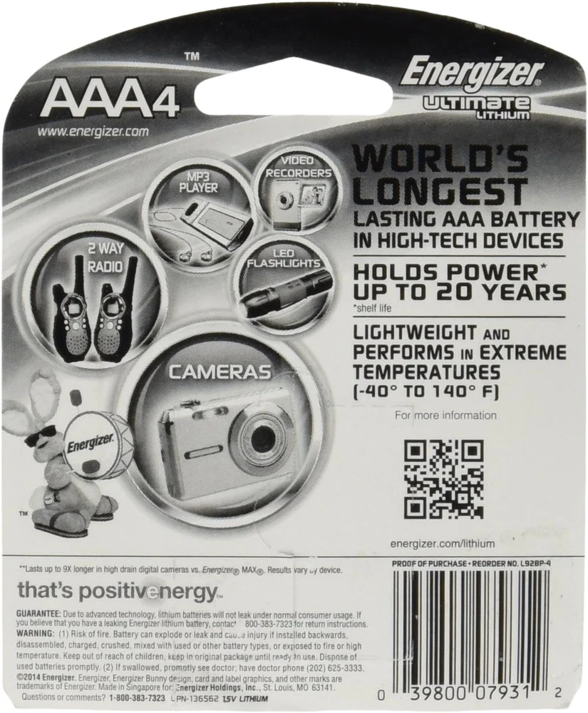 Store New Arrivals Add to Favorite View Feedback Contact L92 ULTIMATE LITHIUM 4 AAA on CARD Description Item model number L92 Unit Count 4 Count Battery Cell Composition Lithium Batteries 4 AAA batteries required. Recommended Uses For Product Camera Number of Batteries 4 AAA batteries required. Manufacturer Batteries Is Discontinued By Manufacturer No Package Dimensions 4.41 x 3.62 x 0.47 inches; 1.13 ounces Size 4 Count (Pack of 1) ENERGIZER L92 ULTIMATE LITHIUM 4 AAA ON CARD ENERGIZER L92 ULTIMATE LITHIUM 4 AAA ON CARD ABOUT US We offer the best prices around on high quality products. Our E-store includes media such as books, movies, music and games while offering electronics, toys, sporting apparel, clothing, tools, general home, garden items and more. SHIPPING We are always working hard to ensure your package arrives as soon as possible. Please understand that some factors like weather, high postal traffic, and the performance of shipping companies are outside of our control. We offer free shipping to the lower 48 states and ship within 2 business days of payment, usually sooner. We do not accept P.O. Boxes. Please provide a physical address. For shipping outside of the continental USA, we only use eBay's Global Shipping Program.The item is shipped to KY and then sent to the rest of the world. International customers are responsible for all duties and taxes. Continue to check out in order to calculate costs for shipping the item to your country. Messages regarding eBay's Global Shipping Program MUST be directed at eBay EXCLUSIVELY. RETURNS We offer a 30-Day Return Policy on items which you are not completely satisfied with. You have the option for a full-refund or an exchange of the item. No returns are available on items shipped outside of the USA. PAYMENT We accept PayPal. CONTACT US This page content is yet to come Please ad us to your favorite seller and visit again later Thank You CUSTOMER SATISFACTION We try our very best to make sure every customer is completely satisfied. If there's a problem, message us! We're happy to help. WE ACCEPT Copyright © 2021 AutoDS. | All Rights Reserved