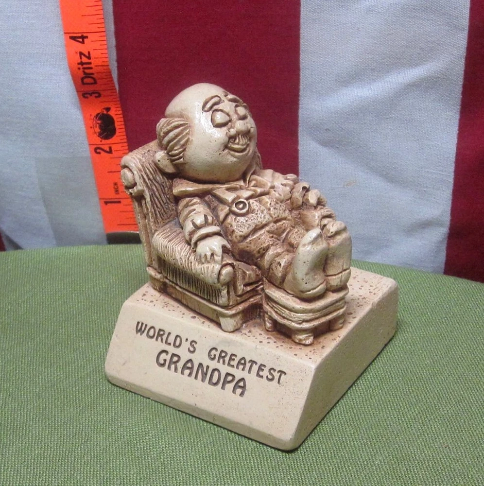 WORLD’S GREATEST GRANDPA novelty Silli-Sculpt statue 1970 gift Russ Berrie This is a previously-owned figurine created by Russ Berrie & Company in 1979 as part of its “Silli-Sculpt” series (catalog #W-178). It was designed by Paula Brown, shows very little wear, and measures approximately 3½ inches tall… Powered by SixBit's eCommerce Solution