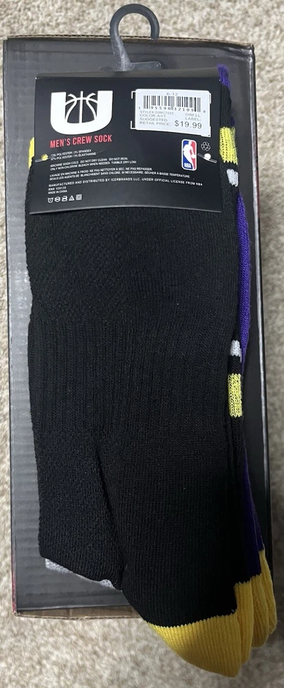 Elevate your game day attire with these LA Lakers crew socks, designed to showcase your team pride in style. Ideal for men's shoe sizes 6-12, these socks feature a mid-calf length and full toe design, ensuring comfort and durability. Each pack contains three pairs, each boasting a striking print of the Lakers' iconic colors—gray, purple, and black—perfect for any casual occasion. Crafted from soft polyester material, these socks are machine washable for easy care and are suited for all seasons. Whether you're hitting the court or the streets, these NBA-themed socks are a versatile addition to any fan's wardrobe, blending fan loyalty with everyday practicality.