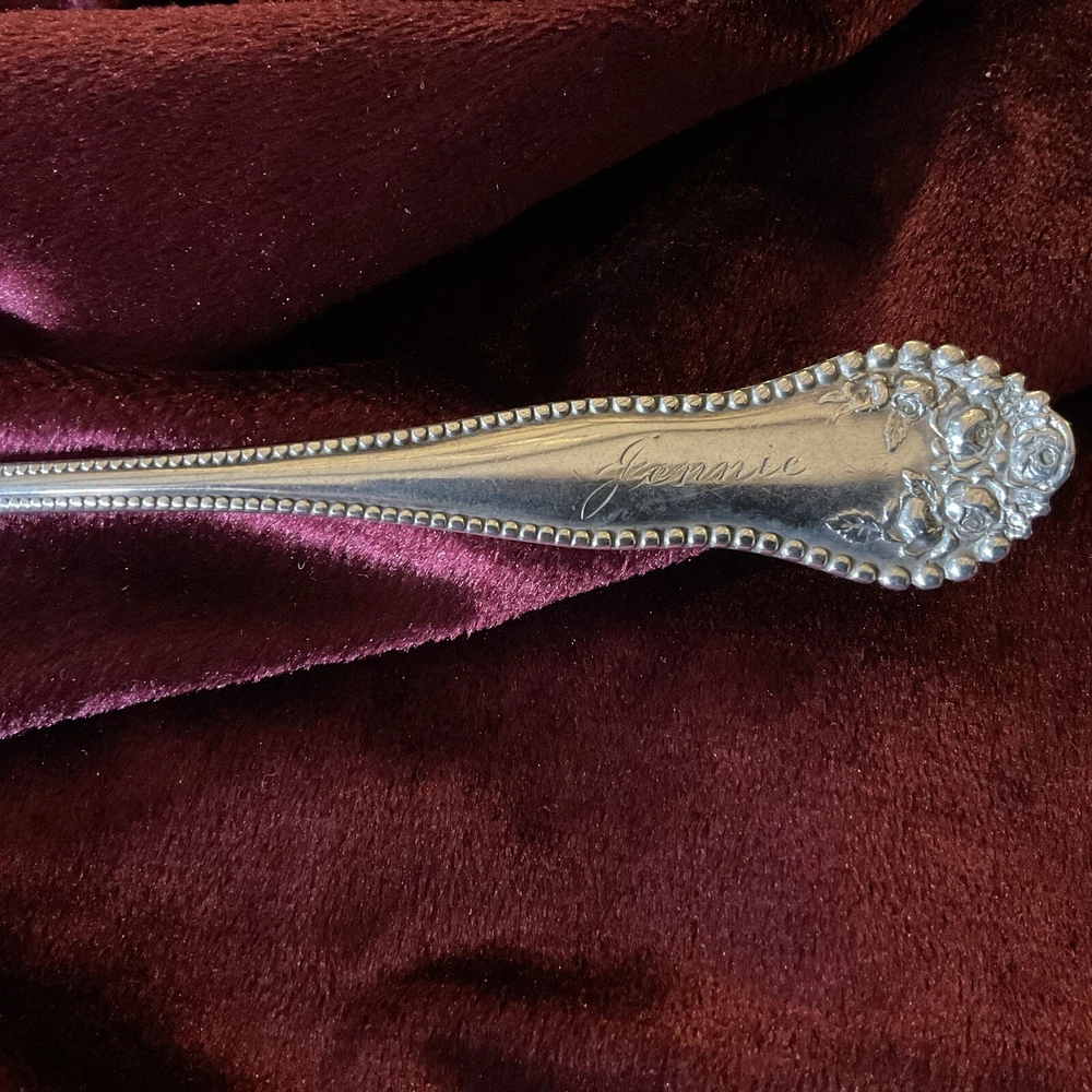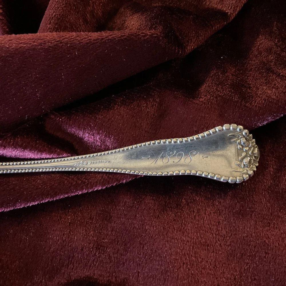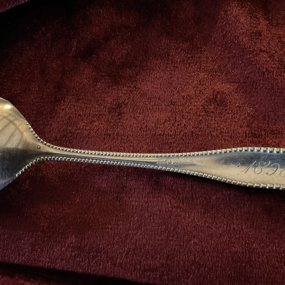 LANCASTER by Gorham Silver, ever popular 1899 Pattern. STERLING TEASPOON. 5 7/8” long. Monogram. “Jennie” on front & “1898” on back Very good antique condition