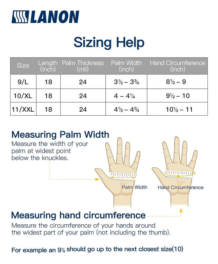 Specifications: Brand: LANON Protection Material: Nitrile Color: Green Length: 18 Inches Style: Multi-Purpose Hazard: Heavy Duty Use Type: Reusable Washing Way: Machine Washable (Air Dried) Maintenance & Cleanup: 1. The gloves can be hand washed with neutral detergent and running water. If machine washed, please do not put them into the dryer, just air dried. 2. The nitrile gloves should be stored at low temperatures, in a dry and dark place. Cautions: 1. Don't use with chemicals without prior trials other than oil/grease tested. 2. Don't wear sharp ornaments like the diamond ring and other jewelry in case of a scratch. 3. Keep away from sharp items like needles and toothpicks in case of a puncture. 4. Don't use nitrile gloves as heat resistance protection. 5. Don't use the gloves in solvents. DURABLE MATERIALS - The ergonomically shaped reusable work gloves are made of premium nitrile, have excellent elasticity and durability, offer high resistance to chemicals, acid, alkali, solvent, and mechanical risks, also can maintain the high performance for the oily environment. LONG SLEEVE PROTECTION - The 22Mil (0.55 millimeter) thickness unlined heavy duty gloves are very soft, easy to pull on and off. The amazing flexibility of these long sleeve 18 inches gloves is the most notable feature, provide effective barrier protection for wrist and ebow from splashes, abrasives and dangerous chemicals. GREAT GRIP - The non-slip particle textured palm chemical resistant gloves offer good grip to grab the wet and greasy parts. They passed the highest level 4 (at least 8000 cycles) of abrasion resistance test, level 1 (1.2 index) of blade resistance test and level 2 (60 newton) of puncture resistance test. MULTIPURPOSE - The NBR work gloves are latex free, better solutions for people with sensitive skin. They are ideal for handling chemicals industry, petrochemical, mechanical manufacturing, mining, agriculture, farm, gardening, construction, automotive industry, forestry, car washing, household cleaning and more. CERTIFICATIONS - LANON industrial gloves for hand protection are certificated by CE 0598 CAT III, with Standards EN 388:2016, EN 420, EN ISO374-5:2016, EN ISO374-1:2016/Type A, and meet CA Prop.65 regulations for phthalates.