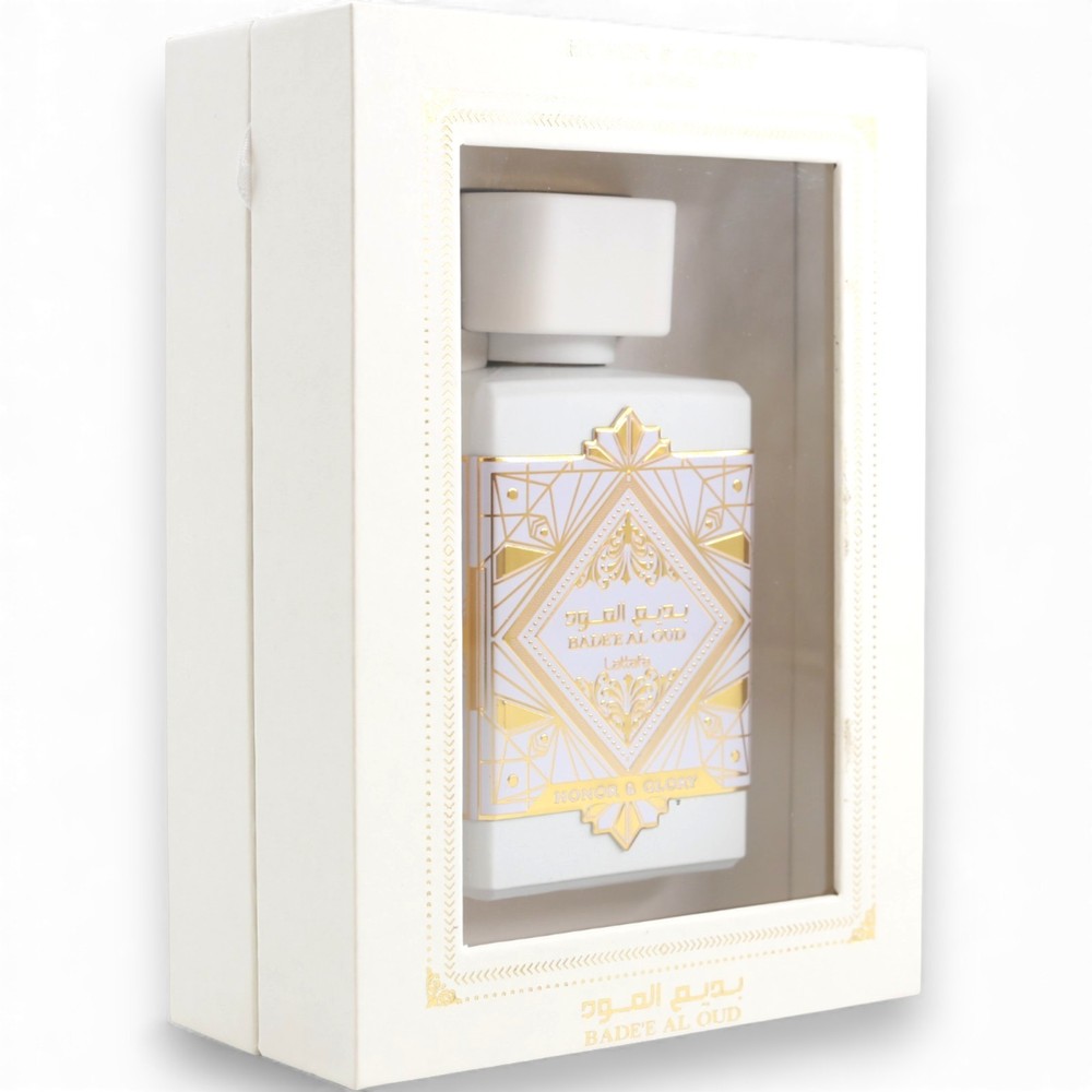 LATTAFA BADE'E AL OUD HONOR & GLORY EAU DE PARFUM 3.4 OZ Unisex • Amber Spicy • 100ml / 3.4 fl oz Fragrance Profile Brand: Lattafa Fragrance Family: Amber Spicy Gender: Unisex Fragrance Notes Top: Pineapple, Crème Brûlée Heart: Benzoin, Cinnamon, Turmeric, Black Pepper Base: Vanilla, Sandalwood, Cashmeran, Moss Why You’ll Love It Delicious sweet opening with pineapple and creamy dessert notes. Spicy heart adds warmth and character without being too heavy. Soft, cozy, long-lasting base of vanilla and woods. Ideal for autumn and winter, evenings out and date nights. How To Use Apply 3–5 sprays on clean, dry skin. Works great for both casual and dressed-up occasions in cooler weather. Layer with vanilla or gourmand body lotion to enhance the sweetness. Customer Experience Commitment Fast dispatch and careful packaging to protect the bottle. Items are handled in a clean, smoke-free environment. We answer all messages within 24 hours. If anything is wrong with your order, please message us first – we will fix it. We always work hard to earn your 5-star positive feedback.