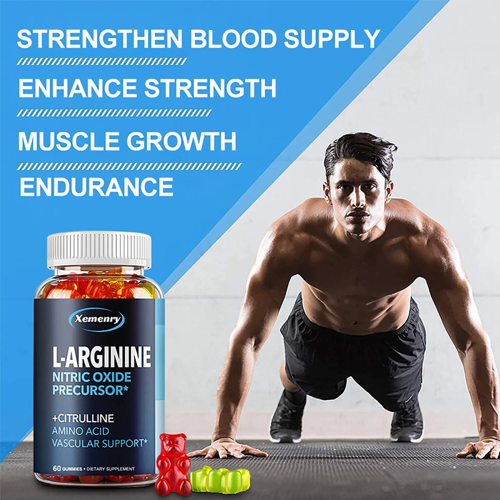 Effects: Energy & Endurance, Men's Health, Testosterone Booster Ingredients: L-Arginine,L-Citrulline,Beet Root Directions: Take 1 gummy twice a day after meals. Shipping: Ships within 48 hours on working days. Shelf life: 2 years Description: Enhance your physique and performance with our L-Arginine L-Citrulline supplement. Increased Nitric Oxide helps maximize your workout results! L-Arginine L-Citrulline supplement, including L-Arginine, Citrulline Malate, and Beetroot. This Nitric Oxide supplement for men helps improve athletic performance, healthy circulation, and cardiovascular support. L-Arginine Citrulline acts as a muscle pump supplement. It helps relax and dilate during your workout, providing nutrients to your muscles and creating a near-perfect environment! Document