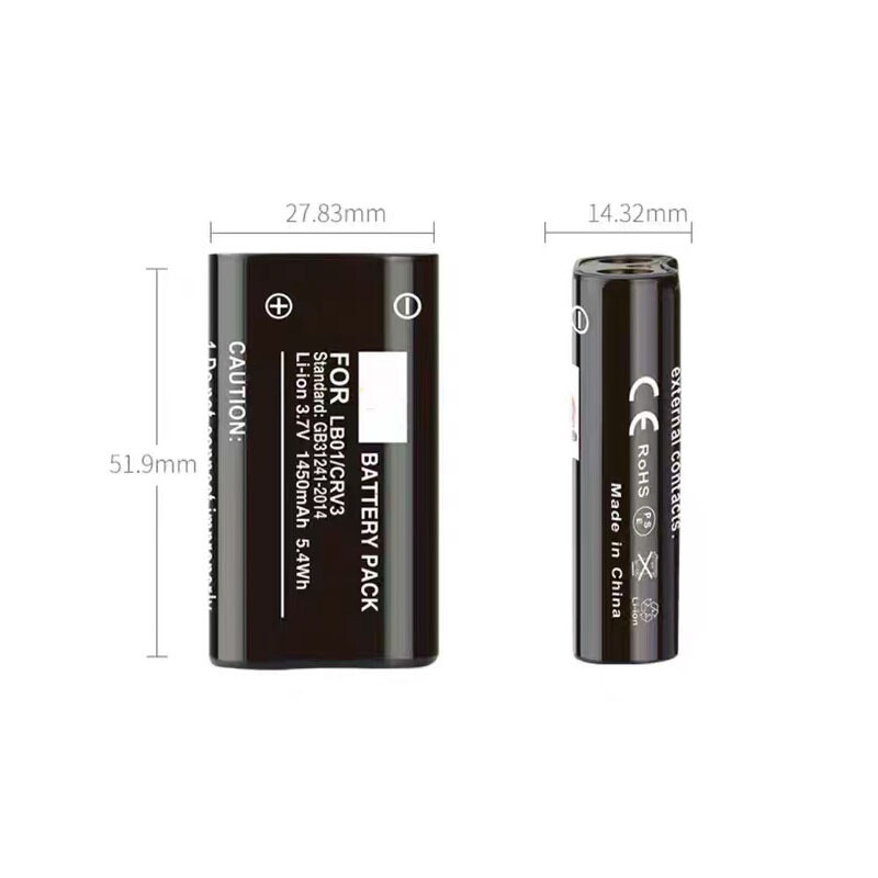 Battery details Model: LB01/CRV3 Voltage: 3.7V Capacity: 1450mAh 5.4Wh Battery Type: Li-ion Color: Black Fit for Olympus CRV3 Battery C740 C3000 C3040 C700 C720 camera battery Dimensions: 51.9mmx 27.83mm x 314.32mm DC Charger details DC plug-in charger, suitable for LB01/CRV3 battery charger