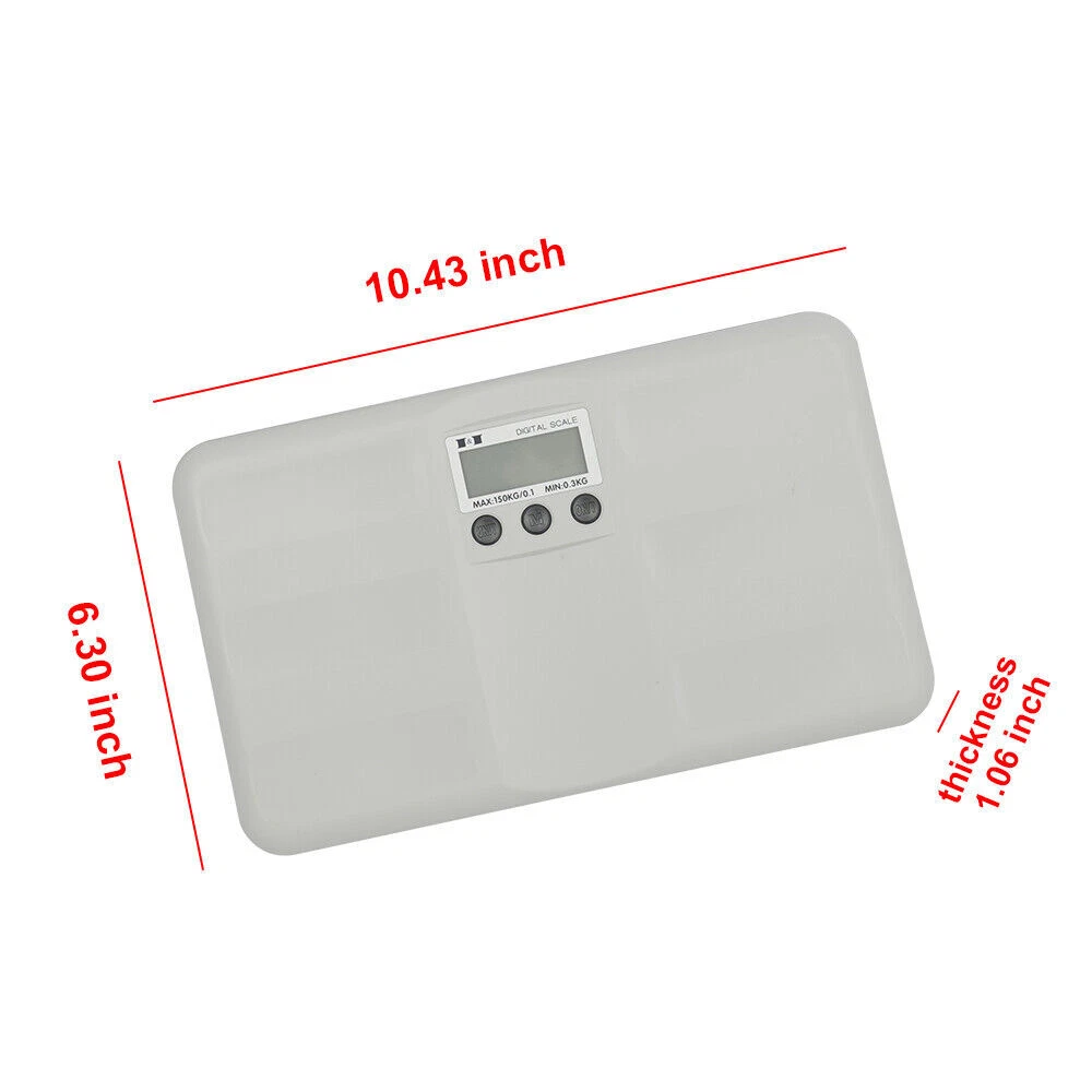 Product Parameters: Product size: 265×157×27mm (10.43*6.18*10.63 inches) Net weight: 450g (0.992 pounds) Gross weight: 545g (1.2 pounds) Maximum weighing: 150kg (330.69 pounds) Graduation value: 100g (0.22 pounds) Minimum weighing: 300g (0.661 pounds) Power supply: 2×AAA power supply (without battery) Display: red backlight display Features: 1. Low power alarm, don’t worry about running out of power during use 2. Unit conversion function (KG/LB), more convenient to use 3. Tare + lock/unlock + lock alarm function Packing List: Multifunction Digital Scale(exclude battery) LCD Digital Pet Dog Cat Scale 150kg Capacity Electronic Pet Scale Weight White Product Parameters: Product size: 265×157×27mm (10.43*6.18*10.63 inches) Net weight: 450g (0.992 pounds) Gross weight: 545g (1.2 pounds) Maximum weighing: 150kg (330.69 pounds) Graduation value: 100g (0.22 pounds) Minimum weighing: 300g (0.661 pounds) Power supply: 2×AAA power supply (without battery) Display: red backlight display Features: 1. Low power alarm, don’t worry about running out of power during use 2. Unit conversion function (KG/LB), more convenient to use 3. Tare + lock/unlock + lock alarm function Packing List: Multifunction Digital Scale(exclude battery) Note:To weigh the baby, Dog Cat Pet or other puppy pet, please use a (baby) basket before weighting. Payment Delivery details Terms of sales About us Contact us Payment We accept ebay payment 。 Fees such as import duties, taxes are not included in the item price or shipping costs. These charges are the buyer's responsibility. Delivery details Shipping: 2-9 working days to: USA Terms of sales We maintain high standards of excellence and strive for hundred percent customer satisfaction. Feedback is very important to us. We hope that you contact us immediately before you give neutral or negative feedback, so that we can address your concerns. It is impossible to address issues if we do not know about them! About us Your satis faction is our ultimate goal. We work hard to earn your trust and future business. Our certified technicians have tested each item before shipping. The unit comes with 1 year limited warranty on all manufacturing defects. a) If you receive a defective item, you may return it or ask for a discount. Please contact us within 14 days after you receive the package. b) What you returned must be intact and in its original packaging as re? u. Customer is responsible for shipping costs of the returned item. c) We will cover the cost of shipping back t with the shipping rate indicated in the registration page. We will send you a new unit or refund the full payment you paid. Thank you. Contact us Business Hour Business Hour: Monday To Friday: 8:30 AM to 5:00 PM (Beijing China time) Due to time zones, our reply to your questions may not be immediately. But within above working time, we will reply your email within 24 hours. If it's non-workdays, please kindly be patient and wait till Monday. Please contact us with ebay message. Please feel free to contact us if you have any questions. Monday To Friday: 8:30 AM to 5:00 PM (Beijing China time) Due to time zones, our reply to your questions may not be immediately. But within above working time, we will reply your email within 24 hours. If it's non-workdays, please kindly be patient and wait till Monday. Please contact us with ebay message. Please feel free to contact us if you have any questions. ~Feature~ AAAAA+ SELLER!!! *Feature 1 High quality!Great Communication! * Feature * US Local Warehouse, Fast Shipping Country/Region of Manufacture Unknown Brand Unbranded Note Mini scale Maximum Weight Capacity 150kg (330.69 pounds) Size 265×157×27mm (10.43*6.18*10.63 inches) EAN Does not apply UPC Does not apply ISBN Does not apply On Jan 26, 2025 at 01:50:59 PST, seller added the following information: