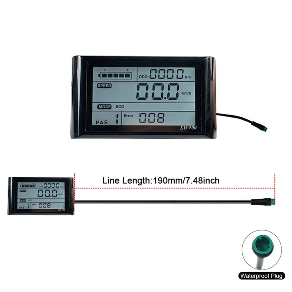 Description: *Brand new and high quality *Made of high quality material, durable and practical to use *SW900 LCD Display Meter Control Panel 24/36/48V E-Bike Electric Bicycle Scooter *Can be automatically identified and compatible 24V ,36V and 48V Voltage. *It will show the true reflection of the battery charge, real time recording of the power consumption to ensure riding mileage. *The individual joints are clearly set up to help with cost-effective installation. *When connected to a bicycle, this product will display a lot of useful data on your bike, such as riding speed, time, power and temperature. *The color display on the meter makes it easier for you to see the data on the panel. *The SW900 LCD Display has multiple functions serving as a trip computer as well as controlling the whole ebike system after the conversion. *Wheel size can be changed for different applications. *Applicable to E-Bike Electric Bicycle Scooter Specification: *Material: LCD, Plastic *Color: Black *Size: 110*61mm(As Pictures Show) *Type:LCD SW900 Display *Voltage:24V,36V,48V *Compatible with :JN controller *Plug:5pin *Plug Type:SM Plug/ Waterproof Plug *Wire length: about 167cm/19cm *Weight: about 240.2g /202.6g *Waterproof:IP56 Package Includes: 1 x LCD Display Note: 1. The real color of the item may be slightly different from the pictures shown on website caused by many factors such as brightness of your monitor and light brightness. 2. Please allow slight manual measurement deviation for the data.Thank you!