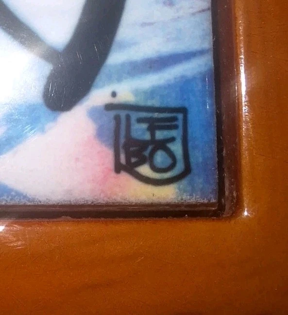 "YOU AND ME TOGETHER FOREVER" Love Birds Ceramic Tile Treasure Box, crafted by the late Floridian artist David Le Batard (LEBO). This fun piece has a playful, novelty style that's sure to bring a touch of charm to any collection or display. The top of the box is made from ceramic and porcelain, wooden bottom base. The artist's signature is on the lower right corner of the piece. The item is is excellent used condition with no chips, nicks, scratches or discoloration. The box measures approx 5 1/2" x 5 1/2" 14cm×14cm. UC3