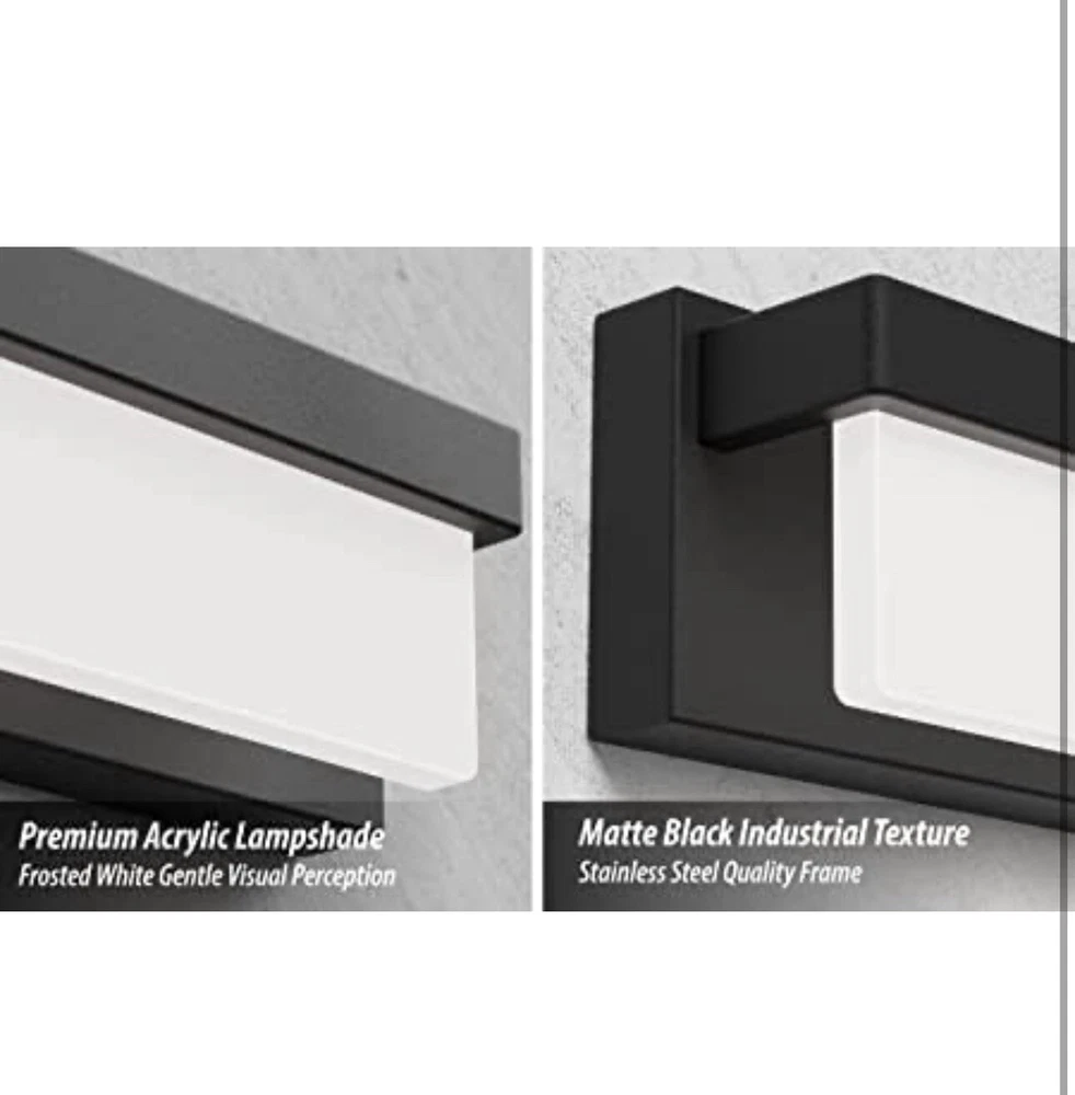 LED Bathroom Vanity Light Fixture Over Mirror 16.5 inch Modern Rectangle Black