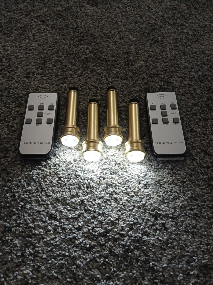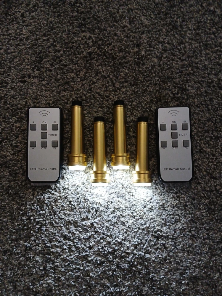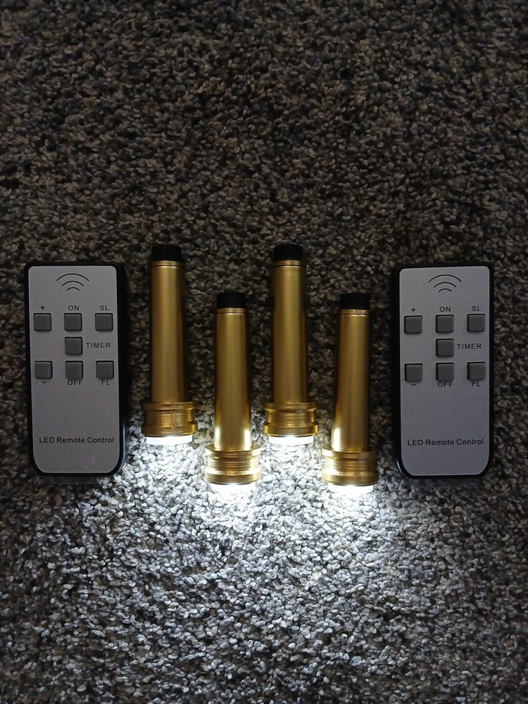 Fits Coleman 200A Lanterns. 4 tubes and 2 remotes. No Electrical Cords or Wires. Gold Plastc. Grandpas Old Lantern LED Burner Tube Inserts is Made For Coleman 200A Lanterns. Remove Original Tubes and Insert LED Tubes Quickly Without Damaging Lantern. Made to Display Your Collection Indoors, Shows, or Rare Unfired Lanterns. Lights. Switch Back to Original anytime! Lights are not made to replace the Same Light Output As Original Fuel. But Makes A Nice Light. 3 Modes of Glow, Including Slow Flicker, fast flicker, or steady. Requires 1 AAA battery per tube. LED inserts are made to display non- working lanterns, unfired rare lanterns, and indoor displays for a comforting light and show. I am always on the lookout to find a brighter light. As soon as one is developed that can run on the size of battery used, I'm all in. No one would love that more than me. LIGHTS FOR 220-228s ARE FOR SALE AS WELL. KEYWORDS: GRANDPAS OLD LANTERN 220-228
