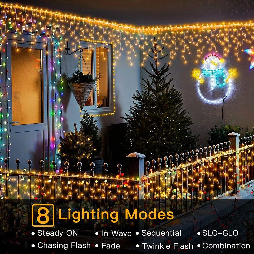 Meinuousa Your Best Online Business Partner LED Curtain Lights String Fairy Outdoor Garden Christmas Wedding Party Icicle US Product Description 11.48FTft Curtain Icicle Lights Wedding Party LED Fairy Christmas Indoor Outdoor The Plug and Control Box are not waterproof. Please use insulating tape to protect against rain. Features: -Icicle curtain lights can be great decoration for your home, patio, garden, yard or wedding, Christmas, Holiday and party etc. Create the romantic atmosphere. -IP44 Waterproof level and safety voltage operate, no worry about outdoor rainy day. -Excellent Decoration Effect for Christmas, Party, Wedding, Celebration, and all other kinds of Decoration Lighting. -The controller has 8 different lighting modes: combination, in waves, sequential, Slo-Glo, chasing/flash, slow fade, twinkle/flash, and steady on, and you can control the light modes by the controller Box. Specification: Material: PVC Connection type: Male-to-Female LED Quantity: 96pcs Cable Length: 4.0M LED Waterproof rate: IP44 Power: 6W Cable color: Transparent Plug Type: US Plug Kindly Note: No more than connect 8 pieces string light. If not light please reduce one set or try reduce more sets Payment Shipping Returns Contact Us About US - We accept the payment through :Credit, debit, and gift cards, Apple Pay, Google Pay, PayPal, and PayPal Credit. - Payment must be fulfilled within 4 days after the end of auction. - Please make sure your ebay address is correct. Or not, please correct it before payment. - If you are a big customer, Please contact with us about the item's PRICE and SHIPPING. - Your feedback & suggestion is deeply appreciated, thanks. 1. Please make sure your address in ebay is correct. 2. We will only follow your address listed in the ebay orders for the shipment. 1. We can exchange the item within 30 days after you received it if it is defective. 2. Returned item must have all original packaging and accessories. 3. Buyer are responsible for the returning shipping costs. 1. We greatly appreciate your POSITIVE feedback. 2. Negative or Neutral feedback does not resolve any underlying issues that you may be experiencing as a buyer. 3. Any question or unsatisfaction please contact us with ebay message, we will sincerely solve for you. Feedback is very important to us, if you are satisfied with us, please leave us 5 star positive feedback to us. If you h have any problem, please contact us first BEFORE you give us neutral or negative feedback, so we can try our best to help you solve your problem. All rights reserved.