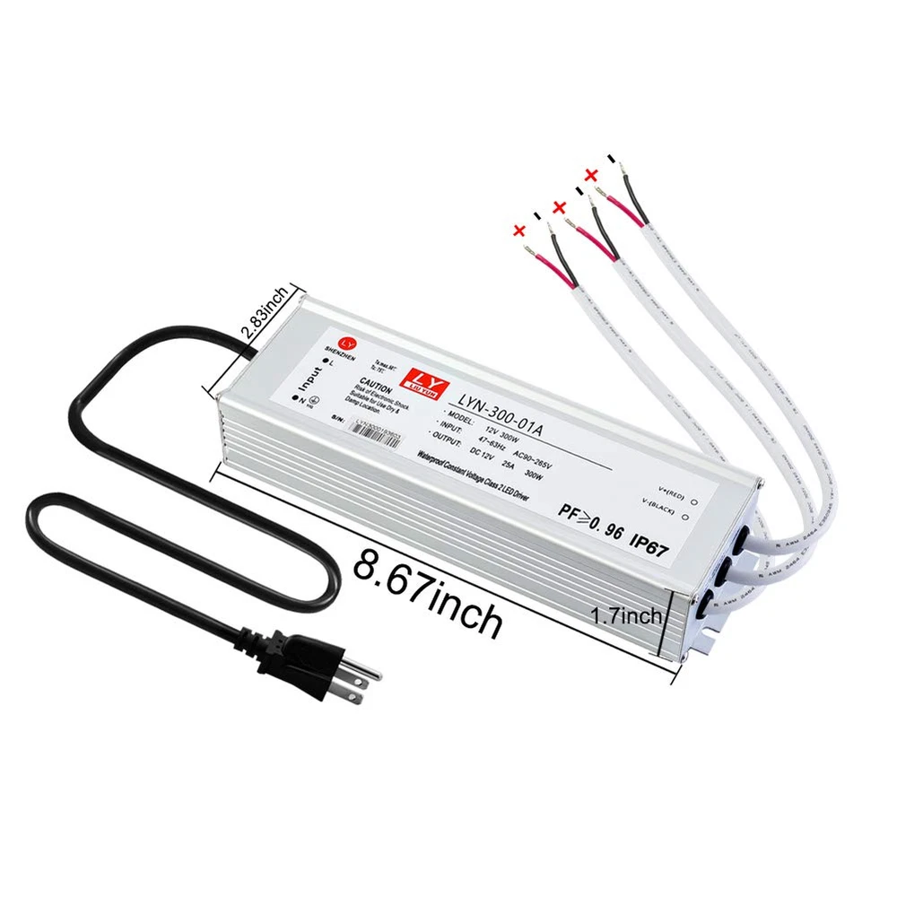 Store New Arrivals Add to Favorite View Feedback Contact LED Driver 300 Watts (100W X3) 25A Waterproof IP67 Power Transformer Adapter 90-265V AC to 12V DC Low Voltage Output, with 3-Pin Plug 3.3 Ft LED Cable for LED Lighting Outdoor Light and Any 12V DC LED Description Item model number 192389848646 Current Rating 25 Amps Power Source Corded Electric Mounting Type Chassis Mount Wattage 300.0 Watt Hours Product Dimensions 2.83"D x 8.67"W x 1.7"H ◆LED Driver model: input voltage AC 90-265V 47 / 63Hz, high PF conversion rate LED driver, output voltage DC 12V, maximum rated power 12v25A300 watts. ◆ 100% full load aging test, short circuit, overload, over voltage, overheating automatic protection, with efficient and reliable IC solution. ◆ Waterproof IP67 grade, LED Driver adapter is made of aluminum alloy casing, easy to dissipate heat, easy to install, ensure long stability and long life ◆ Wide range of LED power supplies: suitable for LED lighting, security cameras, CCTV, LED strips, LED bulbs, computer projects, industrial, outdoor lights and any 12V DC LED lights comply with global lighting safety regulations, compatibility, no flicker ◆ LED transformer certification: IP67, CE, ROHS SELV and so on. If you have any questions about our LED driver 300w products, you can send us an email via the "Seller Contact" button on the account platform. We will give you a satisfactory response within 24 hours to ensure your purchase is risk free. Product Description This high-quality LED transformer adapter 12VDC power supply is an excellent electronic device that can be used to run on 12V DC. Its IP67 waterproof rating is particularly suitable for power supplies that may be exposed to water or moisture. Its most popular applications: LED strips and LED strips power supply, indoor and outdoor LED lighting, computer engineering, LED billboards, LED curtain wall lights, LED modules, LED displays, cameras and any 12V DC LED string lights. Product Specifications: Input: 90-265V AC 47/63HZ Output: 12V DC 25A Wattage: 300W Waterproof: IP67 Input Efficiency: 85% Working Temperature: -10℃ to +60℃, 20%-90%RH High quality pure copper LED transformer Using pure copper winding transformer, higher transformation performance Size: 8.67 * 2.90* 1.71inch Weight: 2.86 pounds Small size, light weight, high efficiency, beautiful appearance design LED power range Suitable for indoor and outdoor lights such as LED lighting, computer engineering, LED light bars, LED light bars, LED displays, LED billboards, LED curtain wall lights, LED modules, LED surveillance, cameras, and any 12V DC LED light string Features Constant voltage style power supply Universal AC input/ Full range Small volume, low weight, high efficiency Protections: short circuit, over load, over voltage, over temp Cooling by free air convection Fully encapsulated with IP67 level 100% full load burn-in test caveat: caveat: Do not open or modify the LED power supply. Please keep children away from high-voltage power supplies Please use it under the guidance of a professional electrician. ABOUT US We offer the best prices around on high quality products. Our E-store includes media such as books, movies, music and games while offering electronics, toys, sporting apparel, clothing, tools, general home, garden items and more. SHIPPING We are always working hard to ensure your package arrives as soon as possible. Please understand that some factors like weather, high postal traffic, and the performance of shipping companies are outside of our control. We offer free shipping to the lower 48 states and ship within 2 business days of payment, usually sooner. We do not accept P.O. Boxes. Please provide a physical address. For shipping outside of the continental USA, we only use eBay's Global Shipping Program.The item is shipped to KY and then sent to the rest of the world. International customers are responsible for all duties and taxes. Continue to check out in order to calculate costs for shipping the item to your country. Messages regarding eBay's Global Shipping Program MUST be directed at eBay EXCLUSIVELY. RETURNS We offer a 30-Day Return Policy on items which you are not completely satisfied with. You have the option for a full-refund or an exchange of the item. No returns are available on items shipped outside of the USA. PAYMENT We accept PayPal. CONTACT US This page content is yet to come Please ad us to your favorite seller and visit again later Thank You CUSTOMER SATISFACTION We try our very best to make sure every customer is completely satisfied. If there's a problem, message us! We're happy to help. WE ACCEPT Copyright © 2021 AutoDS. | All Rights Reserved