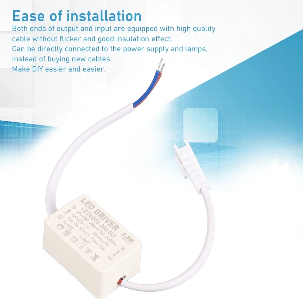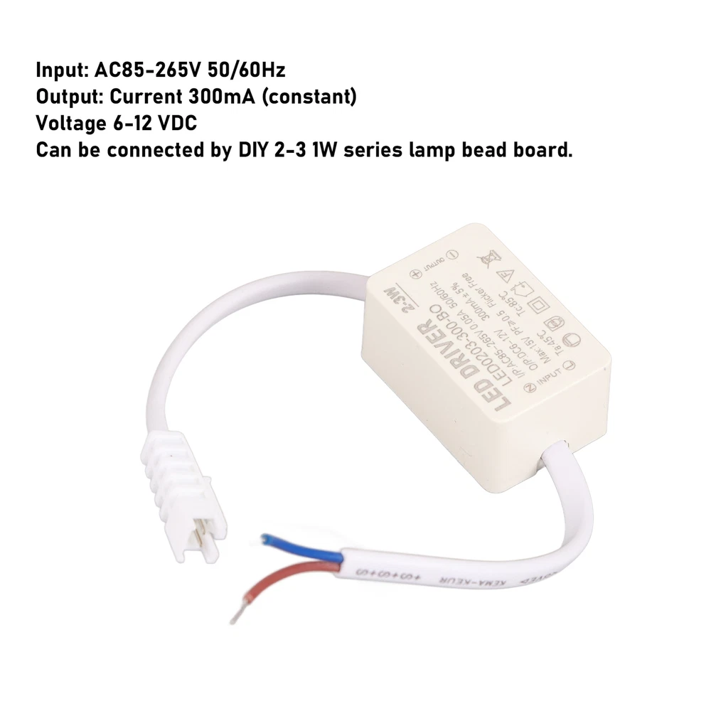 Feature: 1. Input and Output: Input: AC85‑265V 50/60Hz output: current 300mA (constant); 6‑12 VDC voltage. LED driver can connect 2‑3 1W lamp bead by DIY. 2. With Cable: Both ends of output and input are equipped with high quality cable without flicker and good insulation effect. 3. Easy for Installation: The cable can be directly linked to the power supply and lamps, no need to buy a new cable. 4. Superior Performance: Constant current power LED power supply has good performance. No noise, good heat dissipation. 5. Applicable: Compact size, easy to hide, does not affect the overall decoration beauty. LED driver can be used in most lighting products. Specification: Item Type: LED Driver Material: ABS Size: Approx. 4x2.5x1.9cm / 1.6x1.0x0.7in Model: 2-3W Input Voltage: AC85-265V Frequency: 50/60 hz Output Voltage: 6-12VDC Output Current: 300mA Scope of Application: DIY Connect 2-3 1W Series Lamp Bead Board Package List: 1 x LED Driver Note: Manual measurement, slight error, in kind prevail! 1. Our listing price includes the value of goods,packaging cost,and export taxes,not including international duties. 2. duties,taxes,and charges are not included in the item price or shipping fee. 3. T he duties are buyers' responsibility .Please check with your country's customs office determine what these additional costs will be prior to your purchase. 4. All disputes arising from the duties will be submitted to ebay for solution. 1. Any questions, pls. contact us via ebay message or email us. We will reply your message within 48 hours. If you do not receive our reply within 48 hours, pls. post a message again because sometimes our message system may block some emails. 2. If you are satisfied with our service, pls. kindly leave us a positive feedback and give us the Detailed Seller Rating with all " 5 " in very area 3. Our aim is to provide Level Customer Service, your recognition will encourage us greatly and serve you better. We strive to keep all our customers satisfy. We will do our up most to exceed your expectations in customer service, communication and dispatching of your orders. On Jan 7, 2025 at 19:09:50 PST, seller added the following information: