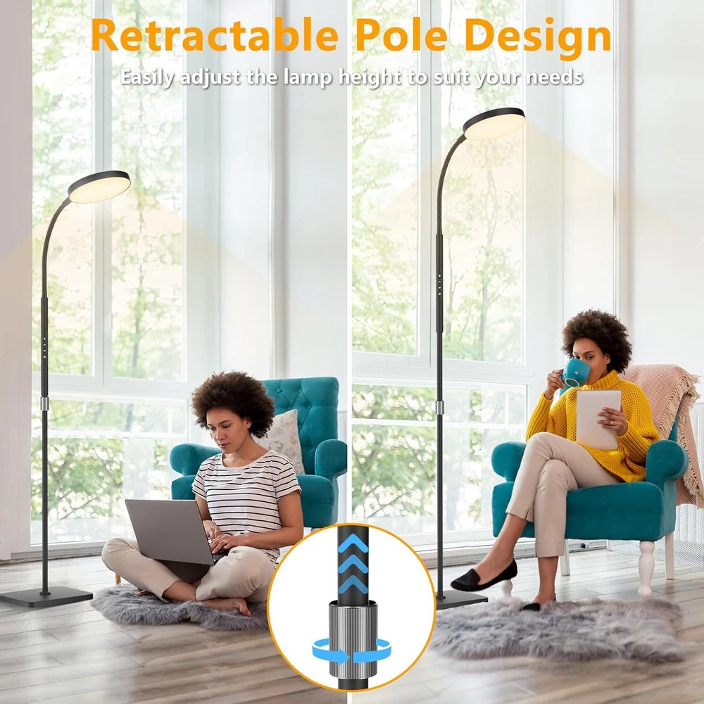 LED Floor Lamp, Height Adjustable Lamps for Living Room, Super Black