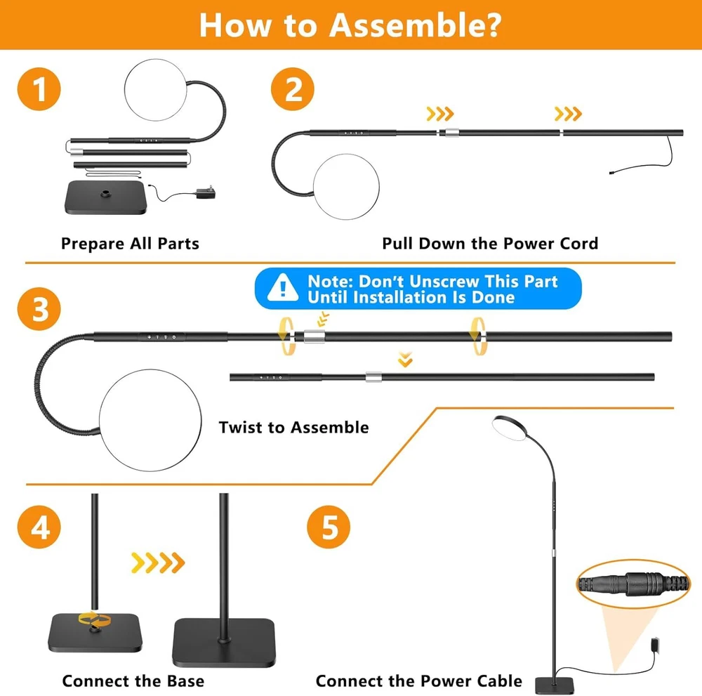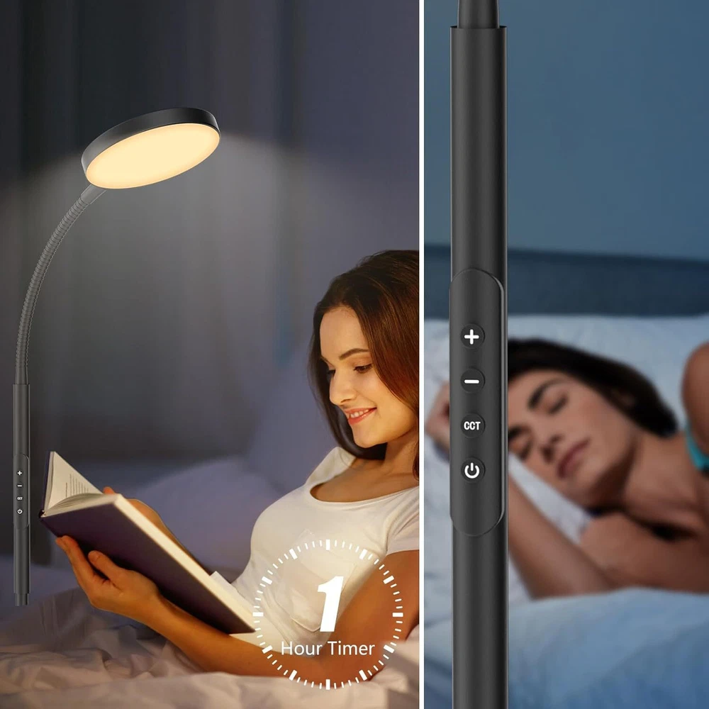 LED Floor Lamp, Height Adjustable Lamps for Living Room, Super Black Product Details Product Dimensions : 8.7 x 6.3 x 68.9 inches; 4.14 Pounds Item model number : lamp001 Manufacturer : Lanonany Finish Type: Matte Base Material: Metal Bulb Base: B15D Product Dimensions: 8.7"D x 6.3"W x 68.9"H Item Weight: 4.14 Pounds 【Adjustable Height Design】Our standing lamp features an adjustable height, perfect for enhancing the reading experience in your living room or bedroom. Boasting 120 high-brightness LEDs, delivering up to 1600 lumens of soft, bright light. With a lifespan of up to 60,000 hours, no need to worry about bulb replacements. The sturdy metal base ensures stability on a variety of surfaces, and the high-quality lamp head is flicker-free and blue light-free to protect your and your family's eyes 【Stepless Dimming Mode】: Elevate your space with our reading light, featuring dimmable brightness (10%-100%) and adjustable color temperature (3000K-6500K). Customize the lighting of the bedroom floor lamp to your preference. Easily switch between cool whites, warm whites, and warm tones to create the perfect ambiance for your bedroom or any room in your home 【Remote Control & Touch Control】Illuminate your room with our lights for bedroom, featuring smart remote control (range 32.8/10m) and touch control. Easily manage your lights, pushing a button for the perfect brightness and color temperature for working, reading, relaxing, breastfeeding, or sleeping. Enjoy convenience at your fingertips without leaving the comfort of your space 【Timer Settings】Our LED floor lamp comes with 30-minute, 1-hour, and 2-hour timer functions, allowing you to customize the shut-off time as needed, all without having to leave the comfort and warmth of your bed or sofa 【Memory Function and Easy to Install】The memory function can remember the brightness and color used when power is cut off. The flexible gooseneck allows you to easily control the light to perfectly illuminate any item. The floor lamp for bedroom is easy to assemble, no additional tools or parts required! If you have any questions or suggestions about our floor lamps for living room, our customer service will assist you within 24 hours