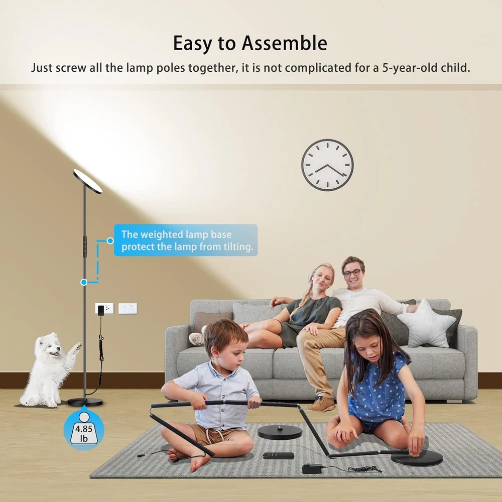 Store New Arrivals Add to Favorite View Feedback Contact LED Floor Lamps for Living Room, 2400LM Super Bright 300W Equivalent LED Floor Lamp with Remote Control, 69" Tall Standing Lamp with Stepless Dimmable, Modern Torchiere Corner Lamp for Bedroom Office Description Item model number 3a8c8cf1-82d9-4545-885e-137f580baa39 Light Source Type LED Style Modern Base Diameter 9.8 Inches Number of Items 1 Power Source Corded Electric Number of Light Sources 132 Material Type Powdered Metal Steel Is Electric Yes Lighting Method Adjustable Finish Types Powder Coated Lamp Type Floor Lamp Subject Character 2700K-4000K-5000K-6500K Controller Type Remote Control, Touch Control Item Shape Round Room Type Office, Bedroom, Living Room, Study Room, Dining Room Product Dimensions 9.8"D x 9.8"W x 69"H Model Number 3a8c8cf1-82d9-4545-885e-137f580baa39 Installation Method Freestanding Efficiency 100 lm/W Is Product Cordless No Number of Pieces 1 Finish Type Powder Coated Specific Uses For Product Working Mode, Night Mode, Nursing Mode, Reading Mode, 2700K-6500K Color Temperature Stepless Dimming, 1 Hour Timing, Memory Function, 50FT Remote Control, Touch Control, 5%-100% Brightness Stepless Dimming Brightness 2400 Lumen Country of Origin China Water Resistance Level Not Water Resistant Connectivity Protocol KNX-RF Item Weight 9 Pounds Connectivity Technology RF Special Features Working Mode, Night Mode, Nursing Mode, Reading Mode, 2700K-6500K Color Temperature Stepless Dimming, CRI>85, No-Flickering, Rotatable Lamp Head, Stable Lamp Base, Easy to Assemble, 1 Hour Timing, Memory Function, 50FT Remote Range, 5%-100% Brightness Stepless Dimming Mount Type Floor Mount Bulb Base E26 Shade Color Black Color Black 24W Wattage 24 watts Indoor Outdoor Usage Indoor Base Material Metal Is Waterproof False Voltage 110 Volts (AC) Control Method Remote, Touch Recommended Uses For Product Memory Function, Working Mode, Night Mode, Nursing Mode, Reading Mode, 2700K-6500K Color Temperature Stepless Dimming, 50FT Remote Range, 5%-100% Brightness Stepless Dimming, 1 Hour Timing Shade Material Acrylic Included Components Remote Control, Power Cable, 1 × Lamp, 4 × Lamp Poles, 1 × Lamp Base, 1 × Remote Control, 1 × Power Adapter with cable, 1 × User Manual Item Dimensions D x W x H 9.8"D x 9.8"W x 69"H Switch Type Touch 🌕 𝘼𝙙𝙟𝙪𝙨𝙩𝙖𝙗𝙡𝙚 𝘽𝙧𝙞𝙜𝙝𝙩𝙣𝙚𝙨𝙨 & 𝘾𝙤𝙡𝙤𝙧 𝙏𝙚𝙢𝙥𝙚𝙧𝙖𝙩𝙪𝙧𝙚 & 𝙍𝙤𝙩𝙖𝙩𝙖𝙗𝙡𝙚 𝙃𝙚𝙖𝙙: Yikuneng LED floor lamp adopts stepless dimming and color temperatures 2700K-6500K. When your kids doing homework, 100% brightness and 5000K daylight are appropriate for reading the books and note. And the dimmable floor lamp can light up any area with 350°rotatable head. 🌖 𝘾𝙤𝙢𝙛𝙤𝙧𝙩𝙖𝙗𝙡𝙚 𝙉𝙞𝙜𝙝𝙩 𝙇𝙞𝙜𝙝𝙩 𝙈𝙤𝙙𝙚 & 𝙈𝙚𝙢𝙤𝙧𝙮 𝙁𝙪𝙣𝙘𝙩𝙞𝙤𝙣: The LED floor lamp for bedroom night model design with soft warm white, you may feel relaxed and comfortable, when you see the warm light in the darkness, create a great sleep environment for your families. The floor lamp can remember your last settings even when you turn it off or after power cut. 🌗 𝘾𝙤𝙣𝙫𝙚𝙣𝙞𝙚𝙣𝙩 𝙍𝙚𝙢𝙤𝙩𝙚 𝘾𝙤𝙣𝙩𝙧𝙤𝙡 & 𝙏𝙤𝙪𝙘𝙝 𝘾𝙤𝙣𝙩𝙧𝙤𝙡: With advanced RF remote control, easy to control your floor lamps any where any direction (with a 50ft range), even you are in another room. The remote has magnets design, you can put it on the standing lamps which find it easily. You also can control it by touch. 🔴 𝙈𝙤𝙙𝙚𝙧𝙣 𝘿𝙚𝙨𝙞𝙜𝙣 & 𝙎𝙩𝙖𝙗𝙡𝙚 𝘽𝙖𝙨𝙚: Our modern floor lamp has a sleek and modern design that complement to your home decor, maximize your space with modern lifestyle. Yikuneng tall floor lamp(69inch) with weighted base firmly hold the standing light to prevent the toppling over when the kids or the pets pass it. 💡 𝙎𝙪𝙥𝙚𝙧 𝘽𝙧𝙞𝙜𝙝𝙩 & 𝙎𝙖𝙫𝙚 𝙀𝙣𝙚𝙧𝙜𝙮: Use 132pcs advanced LEDs, equal to 250W incandescent torchiere floor lamps. Our bright floor lamp 24W more bright then other 30W LED floor lamp, it means save more energy for you, directly reflected on your electricity bill. Works perfectly for living room, bedroom, studying room, office, etc. Yikuneng tall floor lamp provide 36 months after-sale service, we would like to assist you anytime Product Description 1 Color Temperatures 2 Brightness 1 Bedroom 2 Living Room 3 Office 4 Nursing Room 5 Dining Room 1 Working Mode 2 Reading Mode 3 Night Mode 4 Nursing Mode 1 Touch Control 2 Remote Control 1 Stable Lamp Base 2 1H Timer 3 Easy to Assemble ABOUT US We offer the best prices around on high quality products. Our E-store includes media such as books, movies, music and games while offering electronics, toys, sporting apparel, clothing, tools, general home, garden items and more. SHIPPING We are always working hard to ensure your package arrives as soon as possible. Please understand that some factors like weather, high postal traffic, and the performance of shipping companies are outside of our control. We offer free shipping to the lower 48 states and ship within 2 business days of payment, usually sooner. We do not accept P.O. Boxes. Please provide a physical address. For shipping outside of the continental USA, we only use eBay's Global Shipping Program.The item is shipped to KY and then sent to the rest of the world. International customers are responsible for all duties and taxes. Continue to check out in order to calculate costs for shipping the item to your country. Messages regarding eBay's Global Shipping Program MUST be directed at eBay EXCLUSIVELY. RETURNS We offer a 30-Day Return Policy on items which you are not completely satisfied with. You have the option for a full-refund or an exch