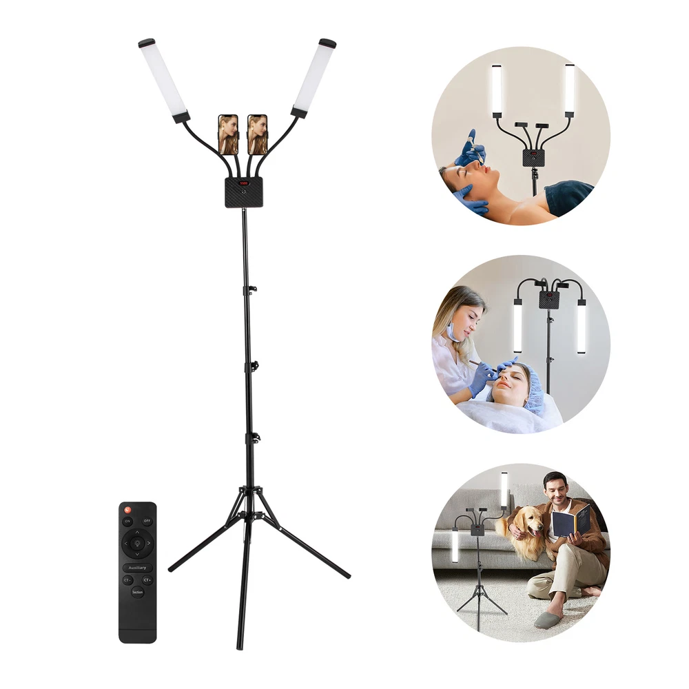 Description A good lash light will undoubtedly have high-quality materials, bright adjustable light, and a humane design, and our lash light can light up your beauty. Its excellent and energy-saving LED light source not only provides you with convenience but also protects your eyes. With it, whether at work or in life, you have an excellent helper. Application It can be widely used in beauty salons, nail salons, tattoo parlors, homes, live rooms, bedrooms, study rooms, and so on. It is ideal for tattoo artists, live streamers, online celebrities, makeup artists, eyelash technicians, facial care professionals, or estheticians. Package Included 1* Lash Light Lamp Body 1* Tripod Stand 1* Power Cord 1* Adapter 1* Handbag 1* English Manual Other Accessories for Assembly LED Floor Light Fill Lamp For Tattoo Social Media Beauty Shoot Eyelash Extension Description A good lash light will undoubtedly have high-quality materials, bright adjustable light, and a humane design, and our lash light can light up your beauty. Its excellent and energy-saving LED light source not only provides you with convenience but also protects your eyes. With it, whether at work or in life, you have an excellent helper. Key Features Sturdy and Durable: It consists of high-quality aluminum alloy and ABS with a painting treatment to make the product rustproof, corrosion-resistant, wear-resistant, and sturdy, which can better maintain long-term beauty and practicality. Excellent Lighting: The LED light source with 45W power, 112 lamp beads, adjustable brightness (10-100%), 2 light colors(white and yellow), 3000-6000K color temperature, 5000LM, and high color rendering index(>90) provides you with more natural and brighter light while protecting your eyes and saving energy, meeting the various lighting needs of beauty, tattooing, and photography. Adjustable and Rotatable: You can adjust the height (up to 6.56ft) by rotating and fixing the knob on the pole, and the lamps and phone holders can also be rotated 360 degrees to fully meet your different needs. Good Heat Dissipation: Uniform heat sinks on the back of the light can effectively help dissipate heat from the light source, which in turn ensures the durability and safety of the product. Lightweight and Portable: With 5.07 lbs of lightweight and a portable black handbag, you can take it with you when you're out on the air or tour, allowing you to focus on your work anytime and anywhere. Simple Installation: We have already equipped the product with the necessary mounting parts, so you only need to spend a little time assembling it. The English manual is equipped for your reference. Easy to Clean: The smooth surface and simple structure make it easy for you to clean it up with a rag. Ideal Gift: Because of its fancy appearance and bright light, you can give it as a gift for your friends, or family on Christmas, Thanksgiving days, etc. Customer Service: We aim to provide quality products and service s. If you have any problems, please feel free to contact us. We will reply and solve the problem for you as soon as possible. Details Cell Phone Holders: Two cell phone holders can clip the cell phones with a width of 2.36-3.35 inches, convenient for you to use in make-up, photography, or live broadcasting, for easy live streaming and shooting. Practical Lampshades: The ABS lampshades have good light transmittance to restore the original brightness of LED lights and effectively prevent dust from entering the interior to reduce the difficulty of cleaning. Independent Control Knob: You can long press it to switch on/off the light, short press it to adjust the light color, or rotate it to adjust the brightness infinitely. Triangle Stand: The tripod stand with foot pads ensures the stability of the product without easily sliding. Application It can be widely used in beauty salons, nail salons, tattoo parlors, homes, live rooms, bedrooms, study rooms, and so on. It is ideal for tattoo artists, live streamers, online celebrities, makeup artists, eyelash technicians, facial care professionals, or estheticians. Specification Model: HT-18R Color: Black Pattern: Solid Process: Painting Material: Aluminum Alloy, ABS Light Source: LED(Included) Number of LED Beads: 112(56 for White Light and 56 for Yellow Light) Light Color: Yellow Light and White Light Indoor/Outdoor Usage: Indoor and Outdoor Power Source: Corded Electric Plug Type: US Standard Assembly Required: Yes Mount Type: Floor Mount Remote Control: Yes Connectivity Technology: USB Remote Control Battery: 2* AAA Batteries(Not Included) Light Battery: 2*F550/570 2200mAh, F750/770 4400mAh, F960/970 6600mAh(Not Included) Lumen: 5000LM Color Temperature: 3000-6000K(±200K) CRI: RA>90 Dimmable Brightness: 10%-100%(Infinite Adjustment) Adjustable Angle: 360 ° Adapter Model: HT-1504000 Input Voltage: 110-240V, 50/60Hz, 1.6A Output Voltage: 15V, 4A Output Power: 40W Light Power: 45W Adjustable Height: Up to 2m/6.56ft Clippable Cell Phone Width: 6-8.5cm/2.36-3.35inch Overall Size: 224*43*48cm/88.19*16.93*18.9inch Package Size: 52*10*43cm/20.47*3.94*16.9inch Gross Weight: 2.8kg/6.17 lbs Net Weight: 2.3kg/5.07 lbs Package Included 1* Lash Light Lamp Body 1* Tripod Stand 1* Power Cord 1* Adapter 1* Handbag 1* English Manual Other Accessories for Assembly Notes Please strictly follow the instructions for use and installation, and pay attention to the safety precautions inside. Please note that the product does not include batteries, you need to prepare 2 AAA batteries yourself. When installing, please pay attention to the correct tightening direction. Please allow the slight color difference caused by the shooting light and 1-3cm error due to manual measurement, and make sure you do not mind before ordering. Payment Delivery details Terms of sales About us Contact us Payment We accept ebay payment 。 Fees such as import duties, taxes are not included in the item price or shipping costs. These charges are the buyer's responsibility. Delivery 