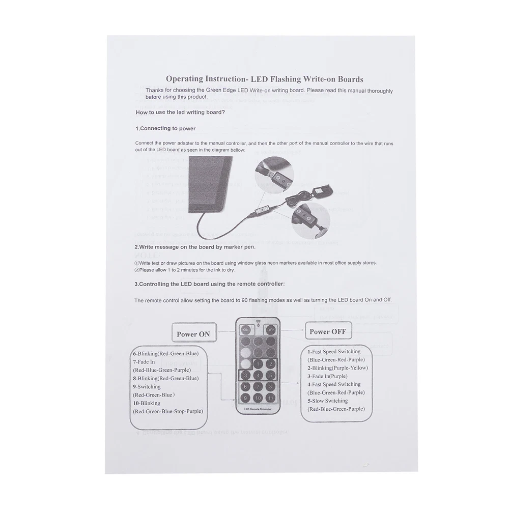 LED Message Writing Board Illuminated Erasable Lighted Chalkboard Menu Sign New Description Show your unique tagline for your store with this LED message writing board! It is a one-piece design, so it can be used without assembly requirements. With 8 color fluorescent markers, you can DIY the display contents freely. Besides, it comes with a controller and a remote control, which makes it easy to control and easy to adjust and combine the light effect among 7 light colors and 11 flashing modes, making your signs and logos more eye-catching and attractive. Key Features Made to Last: The product made of high-quality tempered glass and aluminum alloy with a welding process is strong, durable, and resistant to corrosion, deformation, and abrasion. Attention Catcher: The 23.62*31.5-inch writing surface is ideal for writing your notes, messages, memos, calendars, menus, reminders, and more. The combination of various fluorescent colors, 7 light colors, and 11 flashing modes will display your message in a vivid and eye-catching way and attract the attention of passers-by. Dual Power Types: It comes with a 6.56ft long power cord so that you can install it with more flexibility, or you can also choose to use the battery box which needs 8 AA batteries(not included) to use it without wire length limits. Two Control Methods: The product consists of a controller with a button to control the light color and a remote control to change the light color and flashing mode from a distance. You are free to choose the way you like. Easy to Carry: The lightweight(12.79 lbs) and foldable stand make it easy to be carried from one place to another. Simple Clean-up: The tempered glass writing panel and the equipped soft cloth make it convenient and easy for you to clean this product. One-piece Design: It allows you to use it directly after receiving it without assembly requirements, which saves you effort and time. Protective Package: To prevent the product from being damaged during transportation, we packed it with foam to protect your products to the maximum extent possible. Customer Service: We aim to provide quality products and services. If you have any problems, please feel free to contact us. We will reply and solve the problem for you as soon as possible. Details 8 Fluorescent Markers: These fluorescent markers with different colors allow you to freely create your favorite drawings, advertising writings, or daily menus on the boards and let your creativity run wild. Sturdy Feet: With four sturdy feet and a strong connection, the product can hold the board stably and prevent it from toppling. Application It is suitable for homes, weddings, restaurants, hotels, retail stores, shopping malls, supermarkets, clubs, nightclubs, bars, businesses, classrooms, cafes, special promotional decorations and special events, etc. It is a good substitute for party decorations, menu boards, electronic message boards, wedding decorative boards, digital signage, and so on. Specifications Color: Black Style: Modern Shape: Rectangular Material: Tempered Glass, Aluminum Alloy Process: Welding Assembly Required: No Mount Type: Free Standing Plug Type: US Standard Power Source: Battery Powered/Power Corded Battery Type: 8*AA Batteries(Not Included) Power Cord Length: 2m/6.56ft Panel Size: 60*80cm/23.62*31.5inch Product Overal Height: 120cm/47.24inch Packaging Size: 116*68.5*5.5cm/45.67*26.97*2.17inch Gross Weight: 6.3kg/13.89lbs Net Weight: 5.8kg/12.79lbs Package Included 1*LED Message Writing Board 8*Fluorescent Markers 1*Battry Box 1*Adapter 1*Remote Control 1*Controller 1*Soft Cloth 1*English Manual Notes Please check the size carefully before ordering. Please clean the marks with a dry cloth. Please allow the slight color difference caused by the shooting light and 1-3cm error due to manual measurement, and make sure you do not mind before you order. Payment Delivery details Terms of sales About us Contact us Payment We accept ebay payment 。 Fees such as import duties, taxes are not included in the item price or shipping costs. These charges are the buyer's responsibility. Delivery details Shipping: 2-9 working days to: USA Terms of sales We maintain high standards of excellence and strive for hundred percent customer satisfaction. Feedback is very important to us. We hope that you contact us immediately before you give neutral or negative feedback, so that we can address your concerns. It is impossible to address issues if we do not know about them! About us Your satis faction is our ultimate goal. We work hard to earn your trust and future business. Our certified technicians have tested each item before shipping. The unit comes with 1 year limited warranty on all manufacturing defects. a) If you receive a defective item, you may return it or ask for a discount. Please contact us within 14 days after you receive the package. b) What you returned must be intact and in its original packaging as re? u. Customer is responsible for shipping costs of the returned item. c) We will cover the cost of shipping back t with the shipping rate indicated in the registration page. We will send you a new unit or refund the full payment you paid. Thank you. Contact us Business Hour Business Hour: Monday To Friday: 8:30 AM to 5:00 PM (Beijing China time) Due to time zones, our reply to your questions may not be immediately. But within above working time, we will reply your email within 24 hours. If it's non-workdays, please kindly be patient and wait till Monday. Please contact us with ebay message. Please feel free to contact us if you have any questions. Monday To Friday: 8:30 AM to 5:00 PM (Beijing China time) Due to time zones, our reply to your questions may not be immediately. But within above working time, we will reply your email within 24 hours. If it's non-workdays, please kindly be patient and wait till Monday. Please contact us with ebay message. Please feel free to contact us if you have any questions. Brand Unbranded MPN N/A Typ