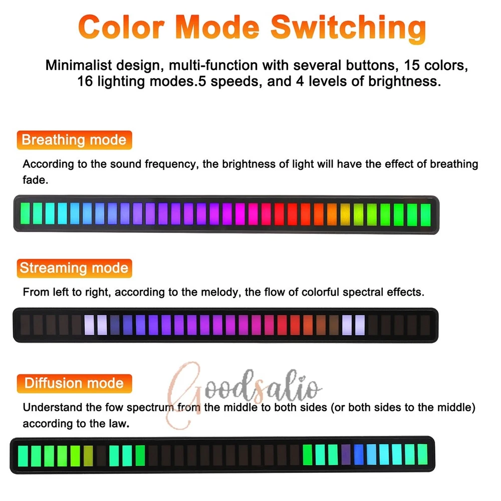 LED Light Bar Sound Control Ambient RGB Rechargeable 32Bit Multi-Color Light LOT ★SPECIAL TIPS: √ Ship within 24 hours Via USPS from NJ ,USA √ 100% New & Excellent Quality √ Professional Customer Service √ Strictly QC, Each set was fully tested before shipping √ Offer delivery with Tracking Number If not 100% satisfied with our products, no-questions asked, we offer 30-day free return & money back. Product Feature * Bulit-in 180mAh rechargeable battery * Design: The RGB voice-activated pickup light is small and charming. * Technology: It automatically senses the external sound through the built-in microphone and lights up the dynamic spectrum of the synchronized rhythm. * Intelligent: Soft light design, bright colors, and built-in AGC automatic gain algorithm. * Color Mode Switching: Minimalist design, multi-function with several buttons, 18 colors, 8 dynamic modes, 5 speeds, and 4 levels of brightness. * 32-bit ARM Processor: this voice-activated light has 32 built-in dazzling lamp beads, with a dedicated MIC for music and a 32-bit ARM processor with a main frequency of 72M, which realizes the dynamics of music and sound field. * Material: RGB pickup light is made of ABS, acrylic, and PVC electronic component material, durable and strong. * Breathing Mode: The brightness of the light will have a breathing fade effect according to the sound frequency. * Streamer Mode: From left to right, the phantom color flow spectrum effect moves according to the melody. * Diffusion Mode: Flow spectrum from middle to sides (or sides to the middle) according to the rhythm. * Mode of Use: With a dual-purpose base, it supports two modes, horizontal and vertical, to enhance the fun of use. * Instructions: long press power to turn on the light, short press mode speed to switch the lighting mode, short press color bright to switch colors; long press power to turn off; in any dynamic mode, tap near the microphone hole or play music, the rhythm of the lights flashing It will change with the rhythm of music and percussion. Note * This model does not have an APP function (without Bluetooth). * This product does not include a built-in battery, please use the USB cable when using. Product Specification Type: 32LED RGB Voice-Activated Ambient Sound Pickup Light Material: PVC+Acrylic+ABS Color: Black Light Color: RGB Lamp Beads: 32LED Light Type: LED Power Supply: Type-C Lamp Shape: Spiral Wattage: 5W Voltage: DC 5V/1A Battery capacity: 180mAh Frequency Response: 100-16KHZ Special Feature: Color Change, Sound Control Dimensions: 181x18x16mm/7.13x0.71x0.63in Package Included 1/2/4 x Pickup Light 1/2/4 x Bracket 1/2/4 x USB Cable 1 x Manual(Universal, Without App Function)