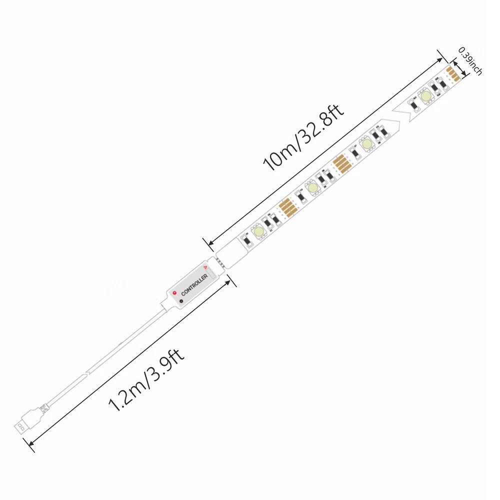 USB LED Light Strip 33ft with App and Remote, LED Backlight for Bedroom LED Lighting: This 33ft USB LED light strip provides RGB lighting for TV backlights, home decor, and accent lighting. Flexible Design: The flexible Strip construction allows you to shape and position the LED strip as desired. Multiple Colors: Choose from a wide range of multiple colors and dynamic lighting effects to set the perfect ambiance. Control: Easily control the light strip with remote or app. Easy Installation: Simply peel and stick the self-adhesive strip to your desired surface for quick and hassle-free installation.