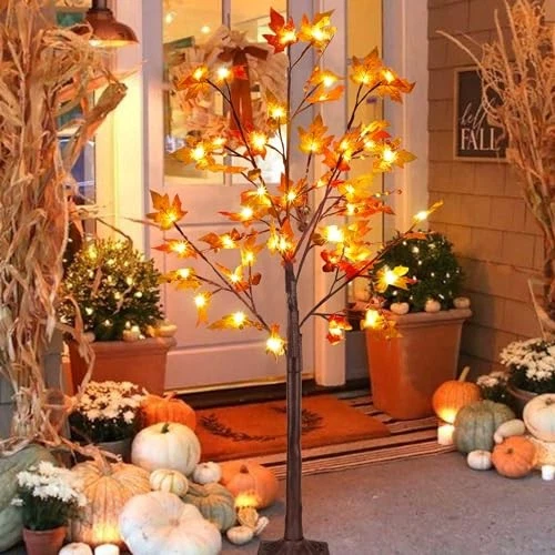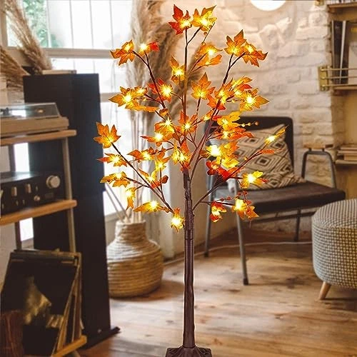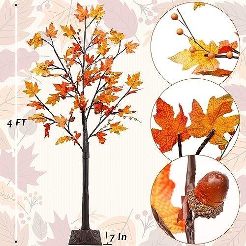 4FT LED Maple Fall Tree with Acorn Pine Cones 56 Warm White Lights