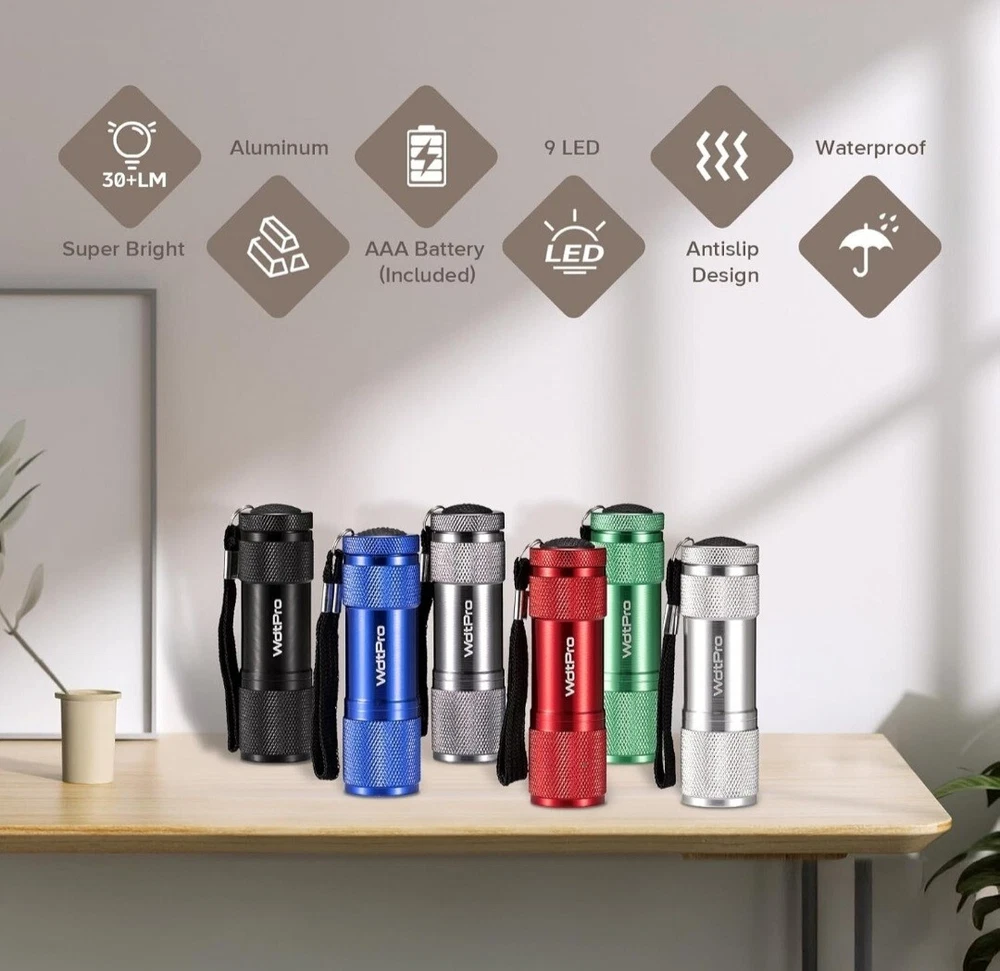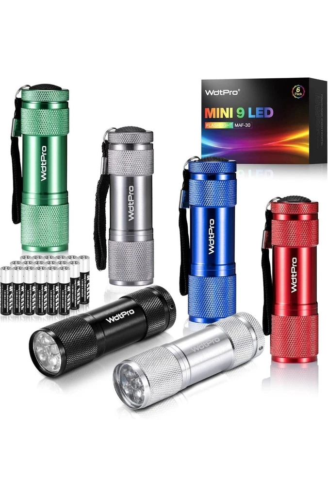 LED Mini Flashlights, Super Bright Flashlight with Lanyard, Assorted Colors – Best Tac Torch Light for Kids, Night Reading, Power Outages, Camping(6 Pack) Mini Led flashlight: These small flashlights with 9 led bulbs, super bright to meet your daily use Assorted Colors : Skid-proof grip with a lanyard for secure hold. Reliable aluminium body. 6 assorted colors led flashlight: blue, red, silver, black, gray, green Portable and Convenient : These mini flashlights must be a good companion for camping or other indoor or outdoor activities because it is lightweight Easy to Use : One on/off button operation and powered by 3*AAA batteries(Included) Satisfaction 100% Guaranteed: Keep one in your car, one in your home, or gift one to a friend or family member. Payment ●Payment must be received within 3 business days of auction closing. ●Please Note: Import duties, taxes and chargers are not included in the item price or shipping charges. These charges are the buyer's responsibility. Shipping ●Items will be shipped within 3 days after the cleared payment. All items will be checked carefully and packages in good condition. ●We will ship to ebay's address only. Please make ¬sure your address on ebay is the same with your shipping address before you pay. ●Shipping and Handling will be determined based upon the ship to address ●If you didn't receive your package, this time schedule, please do not hesitate to contact us. Within 24 hours we will try to update you with the latest tracking details of the shipment. Return and Feedback ●We sincerely hope that you can leave us a positive feedback. If, for any reason you are not satisfied with your purchase, please contact us through "Ask Seller Questions" before leaving neutral or negative feedback ●If you are not satisfied about your received item, please return it within 30 days for a refund. ●We will accept any return and give a full refund (without shipping cost) on any item. The item must be returned to us in original condition and the buyer need to pay return shipping cost