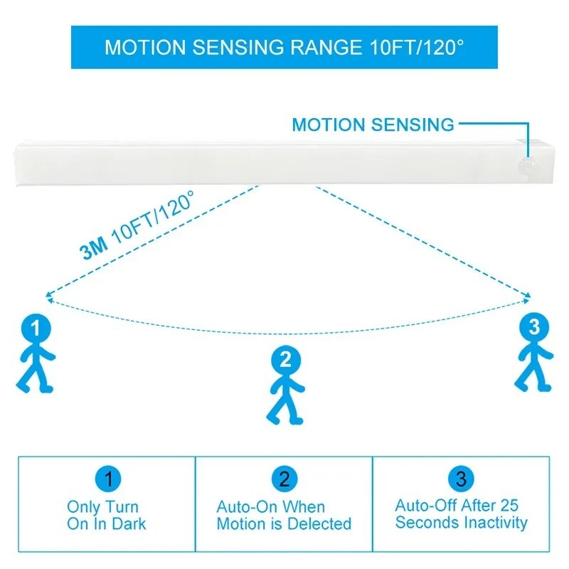 Introducing the perfect solution for your under cabinet lighting needs. This LED motion sensor light strip is designed to provide ample illumination for your kitchen without taking up too much space. Its rechargeable battery ensures that you won't have to constantly replace batteries or worry about cords getting tangled. With a sleek design and easy installation, this light strip is perfect for any home. Its motion sensor technology ensures that the light turns on only when needed, saving energy and providing convenience. Say goodbye to fumbling around in the dark and hello to a well-lit kitchen. The LED Motion Sensor Under Cabinet Closet Light USB Rechargeable Kitchen Lamp Strip is a versatile lighting solution designed to illuminate spaces such as kitchen cabinets, closets, or other areas where extra light is needed. Here’s a detailed description: Features: LED Lighting: Utilizes energy-efficient LED technology to provide bright illumination while consuming less power. Motion Sensor: Equipped with a motion sensor that automatically turns the light on when it detects movement within its range, making it convenient for use in areas like closets or cabinets. USB Rechargeable: Can be recharged via USB, eliminating the need for frequent battery replacements and providing eco-friendly operation. Easy Installation: Designed for easy installation with adhesive backing or mounting brackets, allowing flexibility in placement. Compact and Sleek Design: The slim profile and modern design ensure it blends seamlessly into various environments without being obtrusive. Versatile Use: Ideal for under cabinet lighting in kitchens, providing task lighting for food preparation areas, or enhancing visibility in closets and storage spaces. Benefits: Convenience: Offers hands-free operation with the motion sensor, ensuring light is available when needed without needing to flip switches. Energy Efficiency: LED technology ensures long-lasting illumination while being energy-efficient, saving on electricity costs. Flexibility: Can be used in multiple locations around the home or workplace where additional lighting is required. Modern Design: Enhances the aesthetic appeal of the space with its sleek design and minimalistic profile. Applications: Kitchen: Perfect for lighting up dark corners of kitchen cabinets or providing additional illumination over countertops. Closets: Helps improve visibility in closets, making it easier to find clothing or items stored inside. Workspaces: Suitable for use in offices or workspaces where task lighting is essential. Anywhere Else: Versatile enough to be used in RVs, boats, or any other area where compact, rechargeable lighting is needed. Overall, the LED Motion Sensor Under Cabinet Closet Light USB Rechargeable Kitchen Lamp Strip combines practicality with modern design, offering a convenient and energy-efficient lighting solution for various indoor settings.