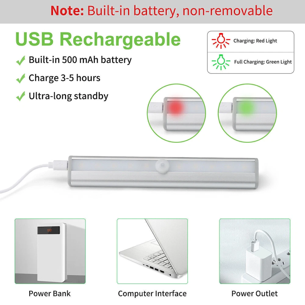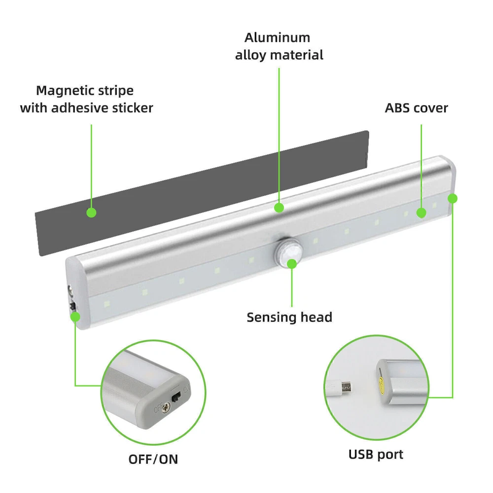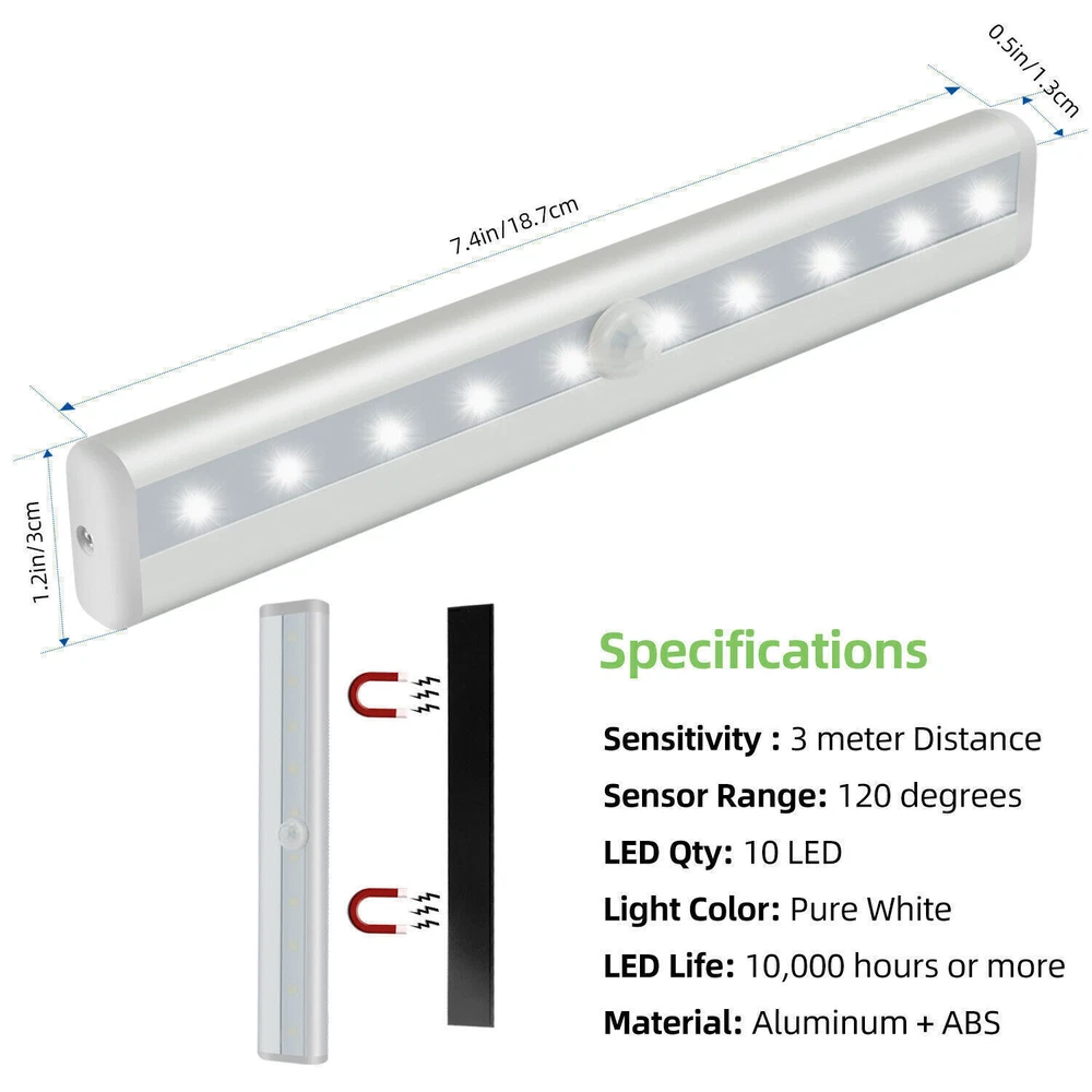 You may also like KC Chiefs 2023-24 Super Bowl Ring Number 15 / Number 87 Size 8-14 Brand NEW 7.95 USD 1.0 USD 29 Medium Posca Markers with 5M Reversible Tips - Coloring Markers Set of Acr... 54.99 USD 9.99 USD Baby Alpaca Wool Winter Warmer Hat Men Women Winter Beanie Hat Gift for Her Him 55.0 USD Free shipping TEC582 Ceramic Detail Spray (1 Gallon) 33.0 USD 2.99 USD Michigan Wolverines National Champions ring 10/11/12 7.35 USD 1.0 USD Baby Feeding Support Seat, Ergonomically Designed for Breast & Bottle Feeding 49.8 USD Free shipping SP611E Bluetooth Smart Music Controller LED Strip WS2811 WS2812B Remote Control 9.32 USD 3.99 USD Maitreya Buddha Commemorative Coin - Smiling Lucky Buddha Belief -Buddhism Coin 12.94 USD Free shipping Off Light Wireless Wall Switch Sound Activated On The Clapper/Clap Voice Switch 15.6 USD Free shipping Sonny Angel Girl Candy House Series Blind Box Doll Keychain(1Pcs) NEW 7.94 USD Free shipping Honolulu Cookie Holiday Gift Cookie Collection (30 Individually Wrapped Cookies) 52.8 USD 2.99 USD Crossbody Chain Adjustable Phone strap With Pouch,Clip and Go Strap fr Phone Bag 4.96 USD 2.99 USD Viral Ring Cam Claymore Mine Kit Replica - Perfect for Pranks and Security 12.98 USD 2.99 USD 135 decibels - Carnivore by TribalEcho Screaming Aztec Death Whistle 54.01 USD Free shipping Desitin Daily Defense Baby Diaper Rash Cream with 13% Zinc Oxide, Barrier Cream 40.0 USD Free shipping Men's Perfume Cupid Hypnosis Pheromone-Infused Cologne Fragrances Charm Toilette 13.79 USD 2.99 USD Mini Portable Washing Machine, 2 in 1 Manual Non-Electric Washing Machine 47.0 USD Free shipping Funny Halloween Costumes For Dogs Puppy Pet Clothing Design Dog Clothes Cosplay 9.32 USD Free shipping Engraved Wheel Of The Year Calendar Celtic Tree Wiccan Calendar Theme Home Decor 7.68 USD 2.99 USD For i16Pro Mini Unlocked Flip Mobile Phone 2 SIM Card Small Display Foldable New 6.92 USD 4.99 USD Best Choice Products 46in Outdoor Joy Christmas Nativity Decoration, 3 Piece 89.99 USD Free shipping Atlanta Braves Men's 59FIFTY Fitted Hat MLB Baseball Era Cap-5950 Brand NEW 15.26 USD 1.99 USD Ergonomic Office Chair Leather Executive Chair Padded Flip Up Armrest Computer 90.0 USD Free shipping Halloween Deadly dolls w/ knives Dog Clothes Funny Clothing Costume Apparel Cos 5.53 USD Free shipping Strip Light LED Motion Sensor Wireless USB Rechargeable Cabinet Closet Lamp PRODUCT DESCRIPTION 1-5pcs Closet Light USB Rechargeable Night Light Wireless Motion Sensor Cabinet *1. Motion Sensor Light Features: Automatic Sensor: With passive infrared technology, it can be detected by the motion of a human in the dark. The Motion Sensor Closet Lights is auto-on within 10 feet, auto-off after 20 seconds of no motion detected helps prolong battery life. Portable and Convenience: This night light is small and portable, you can hold it in the night and move freely. Built-in magnet makes it easy to attach to any metal objects, such as refrigerators, sinks, railings, or stick on any location by using the included iron sheet. Ultra-Bright LED Closet Lights: The Wardrobe Light far brighter than other similar lights, with 10 LED in each light, motion sensor lights provide enough light to make sure you never stumble in the dark. Fantastic energy-saving and environmentally friendly ensure an extra-long life for your light. Battery Operated/USB Rechargeable(Two choices): The Motion Sensor LED Light is Powered by 4*AAA batteries (not included). Built-in 500mAh battery, supports USB charging. Tip: Please use safe and reliable batteries to prevent light damage due to the battery leaks. Warm prompt: The light won't turn on if the light sensor has been detected by enough light. Never install the light near the place where is damp or with high temperature to ensure the sticky tape work well. Multi-Purpose: This safelight has high-quality aluminum alloy case, which has better heat dissipation performance, and it is much more durable and stylish than cheaper plastic closet light, so that It's a perfect choice to be used in attic, basement, children room, closet, cupboard, drawer, emergency supplies storage room, garage, greenhouse, hutch, mailbox, medicine cabinet, gun safe, storm cellar, storage unit, vanity mirror, workstation. Motion Sensor Light Notes: Please make sure if the batteries have been installed in the correct direction. Please use safe and reliable batteries to prolong the lifetime of your lights. Motion Sensor Light Specifications: Sensitivity: Around 3 Meter Distance Sensor Range: About 120 Degrees Light Color: White LED Life: 100,000 Hours Battery Required: 4*AAA Batteries (not included) USB Rechargeable: Built-in 500mAh battery Motion Sensor Light Package Included: 1/2/3/4/5 * PIR Motion Sensor Light 1/2/3/4/5 * User Manual *2. Ordinary Light Features: High quality & fall resistant: Made of high quality PP + PC material, not afraid of falling, perfect for carrying out, not afraid of pressure, can be thrown in the trunk at will. Portable: This night light is compact and portable, you can hold it and move freely at night to make sure you never fall down in the dark. Rechargeable via USB: With a built-in 2200mAh high-capacity battery, the under-cabinet lighting of these closet lights can be charged via USB cable (included) for 3h of charging and 6-8h of lighting.(Details: When the green light is on, it means the light is charging, and when the green light is off, it means the light is fully charged) Wide lighting range: The 12.7 inch light can illuminate a 20㎡ area without fear of darkness. Waterproof: The waterproof design allows you to use it in the bathroom, but please don't soak it directly in the water, as the switch is not waterproof. 3 modes- the best choice for outdoor camping Always bright and high brightness Constantly bright and weakly bright Fast flash 3 kinds of installation methods - to meet all your needs Magnetic (can be freely attached to any iron surface) such as: refrigerator, sink, railing 