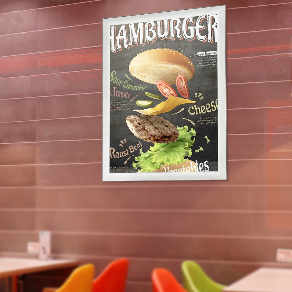 This LED poster frame is a game-changer for displaying artwork, menus, or movie posters! The sleek silver design looks modern and professional, while the bright, energy-efficient LED lighting makes everything pop. Easy to mount horizontally or vertically, it’s super versatile. The magnetic frame makes swapping posters a breeze, and the high-quality materials feel sturdy. Perfect for cafes, theaters, or even home decor—super impressive for the price!