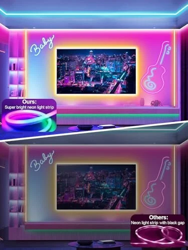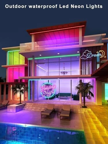 Return Policy Fast Delivery Trusted seller 100ft LED Neon Rope Lights with App and Remote Control, IP65 Waterproof Neon Strip Lights for Outdoor Indoor, DIY Design Flexible Led Rope Lights for Bedroom, Living, Gaming, Party Decor Product Description 【Ultra-Bright RGB Light Strip】Our RGB LED light strip features 2520 LED beads with a side brightness design and a 120-degree projection design that make the LED light strip brighter. It provides a larger illumination coverage area with even light distribution, and the brightness is adjustable. You can use an application or a remote control to set the color of the light strip, with over 16 million colors to choose from, allowing you to DIY your favorite colors 【Music Sync Ambience RGB Light Strip】Our flexible neon light strips can synchronize with music, featuring a built-in microphone that can sense music or other sounds. This creates a perfect lighting atmosp for you, enhancing your gaming setup, living room, or bedroom, allowing you to create the perfect mood and atmosp for any occasion 【Smart APP Control & IR Remote Control】Our neon smart LED strip lights come with a wide range of features that make them easy to use and control. You can choose the pre-set color or mode through the cell phone APP or the remote control, and you can also DIY your favorite color and modes. Remote control it freely in a straight line up to a range of 5 meters. It also has a timing function that allows you to schedule the lights, making it a wake-up light 【Waterproof & Safe】Our neon strip light is not only suitable for indoor use, but also perfect for outdoor lighting with an IP65 waterproof rating (NOTE: Controller is not waterproof). The neon LED strips are powered by 24V low voltage, and the shell is resistant to high temperature. Perfect choice for indoor or outdoor use 【Wide Application】Our flexible neon strips can be easily bent into various patterns. Just use the screws and snaps (package included) to fix the light strip. Due to their high brightness, multifunctionality, and safety, they are the perfect choice for bedroom lighting, party decor, hallway decoration, living room, game room, staircase, outdoor bar, window, and they are also suitable for Christmas, Halloween, and other holidays Shipping Returns Payment Shipping Shipping is FREE to all addresses other than APO/PO boxes in the lower 48 states. All our stock ships from US-based warehouses. Shipped via USPS or UPS (depending on location and package weight) Unless stated otherwise, all orders will ship within 24-72 hours of your payment being processed. Check our feedback to see the great reviews of FAST shipping we offer. Returns Seller does not accept returns Payment We currently accept payment via eBay managed payments only. Once payment is cleared, we will dispatch your shipment within 1-3 business days. Please refer to the "Shipping" tab for more information regarding shipping speed to your destination.