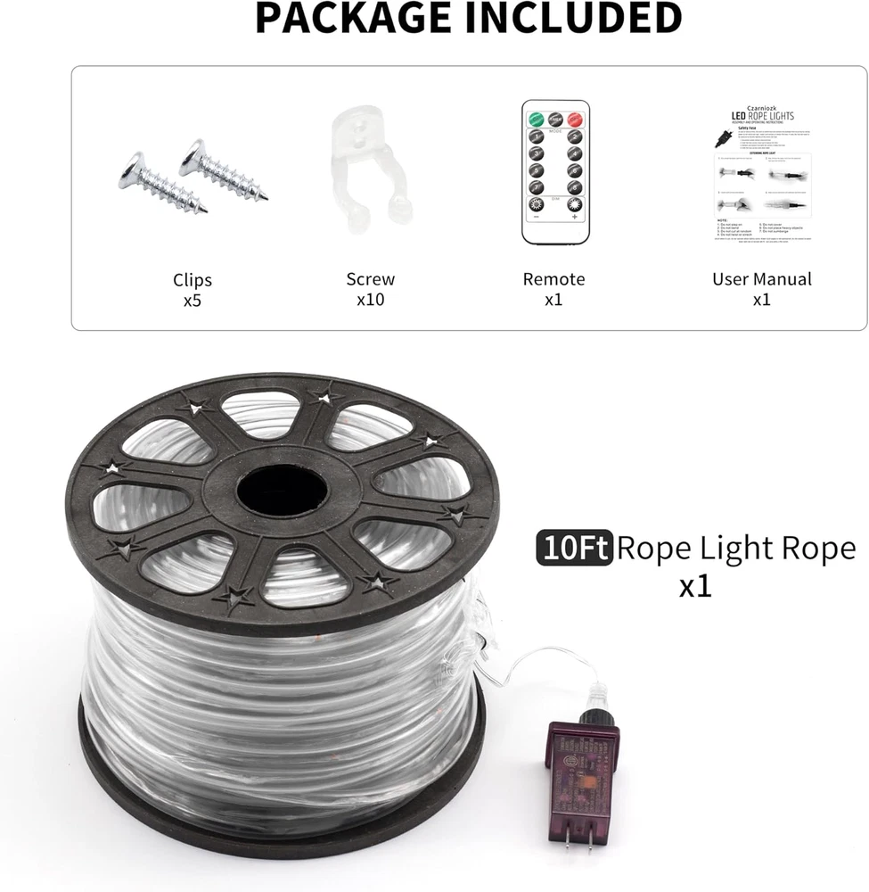 LED Rope Lights for Outside, 10Ft 360°Waterproof LED Rope Lighting, 43 Leds 110V