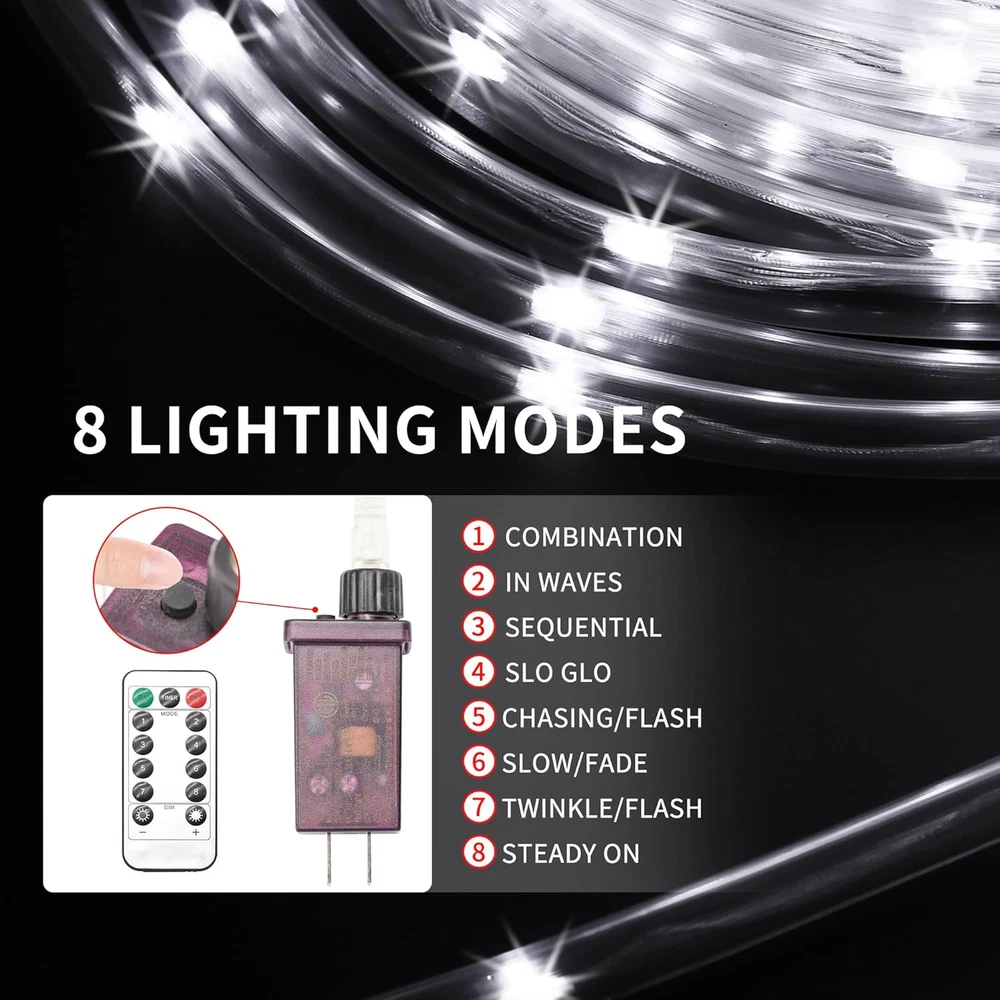 Store New Arrivals Add to Favorite View Feedback Contact LED Rope Lights for Outside,10Ft Waterproof Led Rope Lighting 43 Leds 110V 8 Modes Remote Control Timer Led Strip Light for Indoor Outdoor Party Holiday Garden Decoration (White) Description Item model number LE-PX10-WH Light Source Type LED Style Modern Number of Items 1 Power Source AC Number of Light Sources 43 Control Method Remote Theme Decoration Batteries Included? No Controller Type Remote Control Batteries Required? No Wireless Communication Technology Infrared Material Polyvinyl Chloride Seasons All Seasons Package Dimensions 7.28 x 7.13 x 2.44 inches Included Components Rope light x 1, Remote x1, Manual x 1, Cable clamp x 5, Screw x 10 Indoor/Outdoor Usage Outdoor, Indoor Country of Origin China Light Color White Water Resistance Level Water Resistant Item Weight 10.2 ounces Occasion Christmas Special Features Corded Special Feature Corded Color White Voltage 110 Volts (AC) Size 10Ft Remote control with 8 modes : This Led rope light supports 8 modes lighting effect switching, and support brightness options and timing function.Just press the button on the remote control to change the mode and enjoy the lighting you choose. Durable outdoor LED rope light : This LED rope light is covered with good quality transparent PVC round tube, which can effectively protect the inner circuit.UV resistance5000 hours, use it with confidence. Outdoor rope lights waterproof : Rope lights outdoor have IP65 protection, don't worry about the safety of outdoor use even if it rains.(Please note that the plug is not waterproof, please keep the plug away from water sources) Easy to shape : Outdoor LED rope light is easy to shape around any place you want, only needs to connect to a 110V power supply will add holiday atmosphere for your life. Great for party, wedding, Christmas, camping, patio, garden, bedroom etc. Safe voltage : The plug is equipped with a built-in voltage reducing device.The voltage will automatically decrease to a safe voltage of 36V after passing through the plug,ensure your safety in daily use. Product Description Each set product incloud: 1 x User Manual 1 x Remote 5 x Clips 10 x Screw 1 x 10 Ft Rope Light Remote control with timer Support 8 modes lighting effect switching, with brightness options and timing function. Outdoor IP65 waterproof Don't need to worry about the safety of outdoor use even if it rains.(Please note that the plug is not waterproof, please keep the plug away from water sources) Easy installation Rope lights for outside is easy to around the any place you want, only needs to connect to a 110V power supply will add holiday atmosphere for your life. ABOUT US We offer the best prices around on high quality products. Our E-store includes media such as books, movies, music and games while offering electronics, toys, sporting apparel, clothing, tools, general home, garden items and more. SHIPPING We are always working hard to ensure your package arrives as soon as possible. Please understand that some factors like weather, high postal traffic, and the performance of shipping companies are outside of our control. We offer free shipping to the lower 48 states and ship within 2 business days of payment, usually sooner. We do not accept P.O. Boxes. Please provide a physical address. For shipping outside of the continental USA, we only use eBay's Global Shipping Program.The item is shipped to KY and then sent to the rest of the world. International customers are responsible for all duties and taxes. Continue to check out in order to calculate costs for shipping the item to your country. Messages regarding eBay's Global Shipping Program MUST be directed at eBay EXCLUSIVELY. RETURNS We offer a 30-Day Return Policy on items which you are not completely satisfied with. You have the option for a full-refund or an exchange of the item. No returns are available on items shipped outside of the USA. PAYMENT We accept PayPal. CONTACT US This page content is yet to come Please ad us to your favorite seller and visit again later Thank You CUSTOMER SATISFACTION We try our very best to make sure every customer is completely satisfied. If there's a problem, message us! We're happy to help. WE ACCEPT Copyright © 2021 AutoDS. | All Rights Reserved