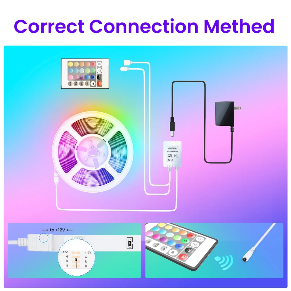 Bright brightness: Rolls of light strips are long enough to reach around your entire room,including bedroomliving room rridorstaircase and so on. High brightness and dimmable Lighting support multiple scenarios Comfortable interaction:① Memory function: The lights automatically remember the last mode settings when you use again. ②Timer Function:Simply control your lights, it can save time and trouble to bring a smart feeling to your life. ③Multi-scene mode: The light strip can be used to decorate your home with 64 scene modes. Smart APP control:Control the LED lights for room via App,24-key remote control. Different Modes can be chosen, like Flashing, Quick, Jump,Fade,etc. you can freely choose to control 16 million colors and adjust the light brightness from 1% to 100% to suit the various places. Sync with Music:With bulit in sensitive microphone,this ambience Lights color changing sync to music and follow the voice rhythm. Firmly stick and Easily intall:With 3M adhansive,the lights can be firmly sticked on wooden or lacquer wall and other clean surfaces.besides,the whole set of equipment is super easy to install and can be inserted.