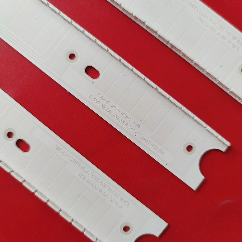 100% working condition.We test the led strip before shipment ,so you can buy with confidence. Many TV models use various different sets of LED strips. Please match the strips shown in the photo to the originals in your TV before ordering. Product Information Condition: Brand new Size (length): 400mm LED bead quantity: 52 per strip Voltage of each LED light: 3V Packaging content: 1 Kit/4 pcs Compatible light bar models: S_5N9_65_SFL_A52_V1.1_151013 LM41-00172T S_5N9_65_SFL_B52_V1.1_151013 LM41-00172U LM41-00120G LM41-00120H BN96-34776A BN96-34777A CY-XJ065FLLV1H CY-XJ065FLLV2H Compatible TV models: Samsung UN65JS850DFXZA UN65JS8500FXZA UN65JS8500FXZC UA65JS9800 UE65JS8502 UE65JS8580 UE65JS8500 UE65JS9000 UN65JS9500 UE65JS9500 UE65JS9000L UN65JS8500F UE65JS8500T UN65JS850D