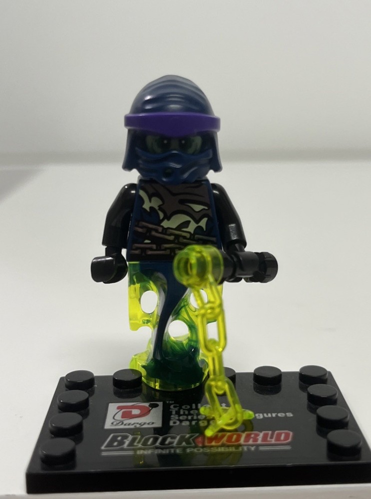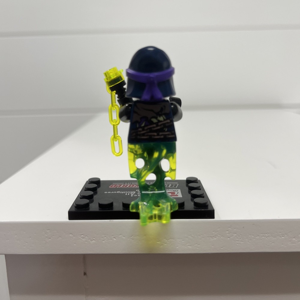 The product is a LEGO NINJAGO minifigure featuring the characters Ghost and Chain Master Wrayth from the "Possession" theme set "Attack of the Morro Dragon." Manufactured in 2015 in Denmark, the multicolor plastic toy is part of the Ninjago product line. This rare and sought-after collectible is in excellent condition and comes from a smoke-free and pet-free home, making it a desirable addition to any LEGO enthusiast's collection.