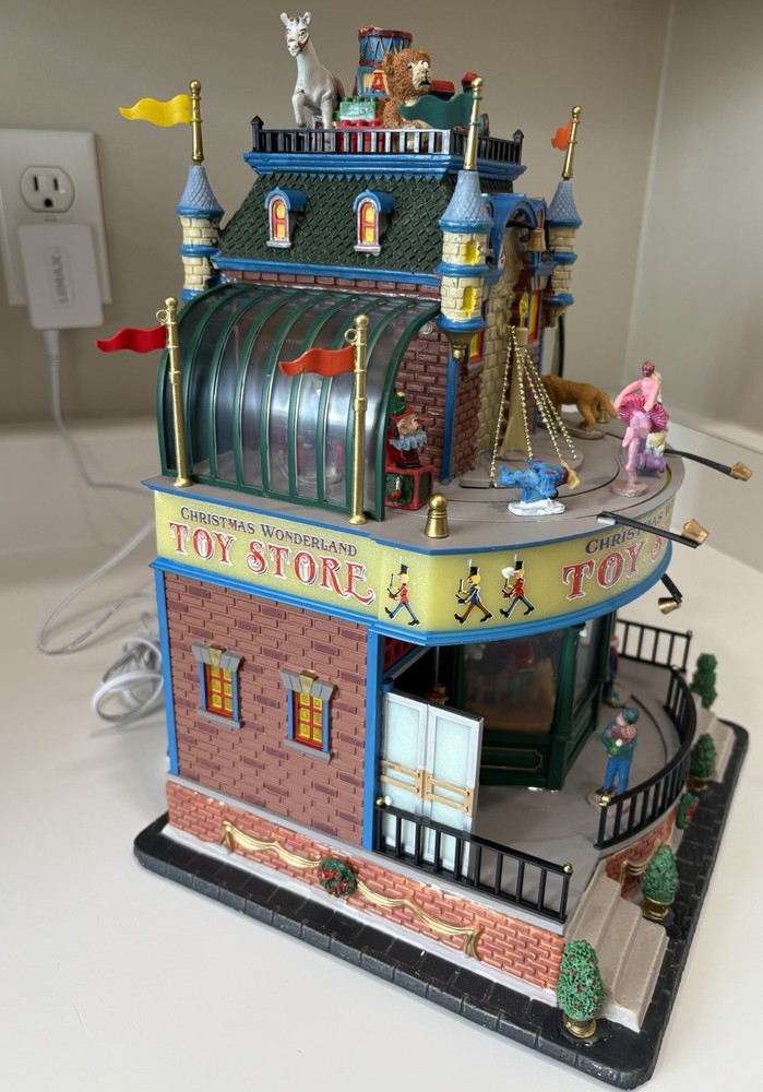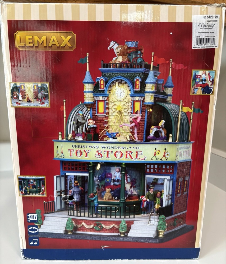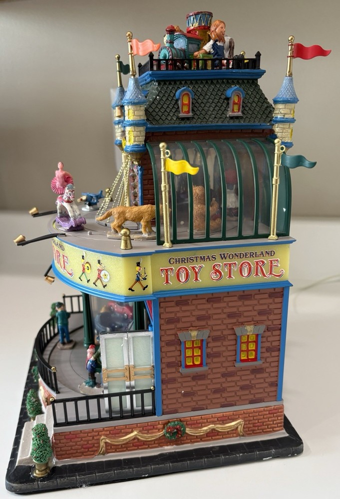 The Large LEMAX Holiday Village Town Christmas Wonderland Toys Store is a festive addition to any Christmas village scene. This asymmetrical building features an illuminated, musical Toys Store interior, perfect for adults and collectors alike. Made of plastic and finished in a matte multicolor scheme, this Lemax Christmas Village piece from the 21st century brings a touch of nostalgia to your holiday decor with its 1960s style and original design. The boxed packaging ensures easy display and storage, making it a great addition to any Lemax Village Houses collection. great condition, lights, and sound and movement all work great, some pieces have fallen off and glued back on flag and couple bushes, see pictures This will be shipped in box with bubble wrap to ensure safe delivery. Check out my other listings, many more items available, I do combine shipping.